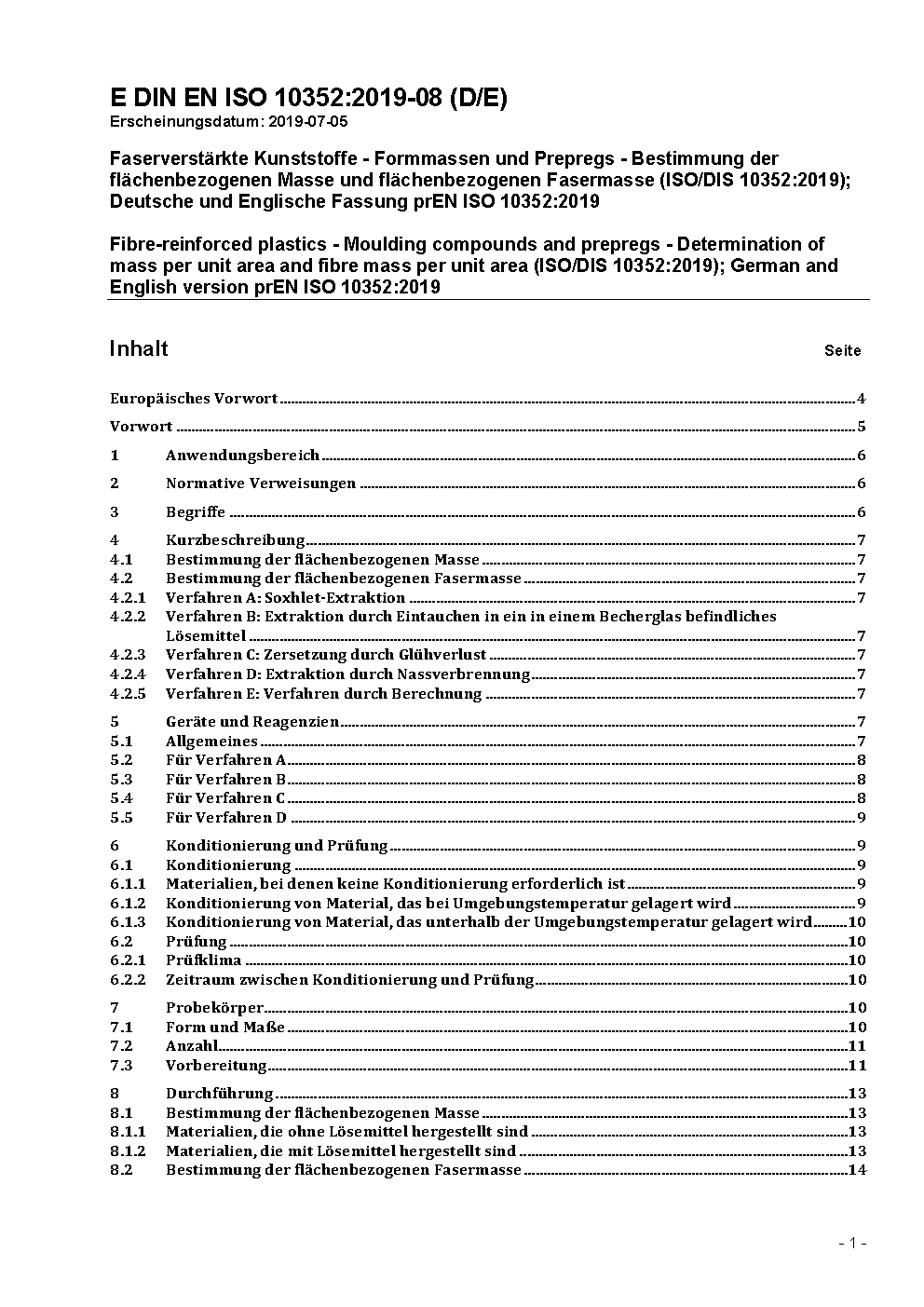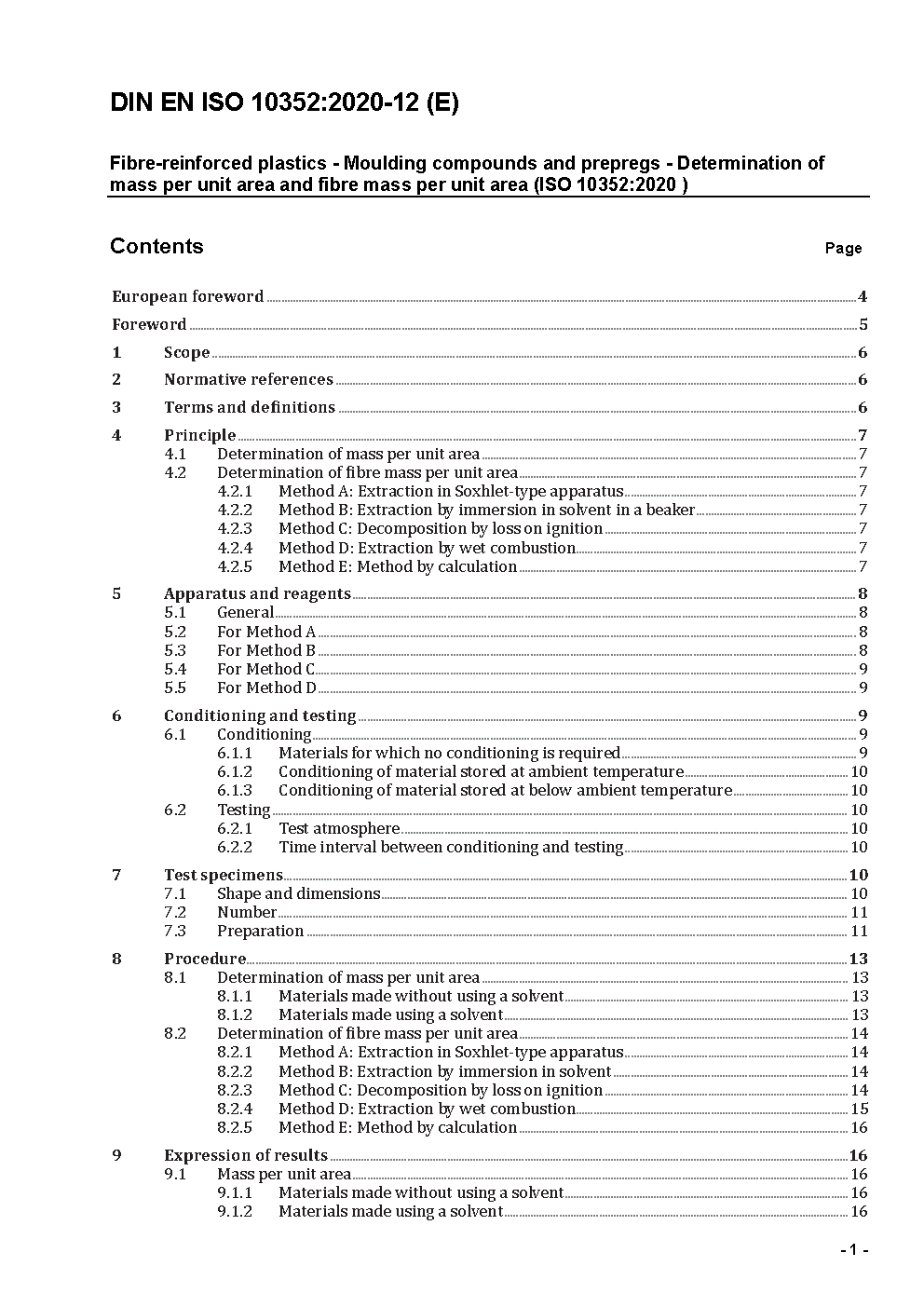 Fibre-reinforced plastics - Moulding compounds and prepregs - Determination of mass per unit area (ISO 10352:2010); German version EN ISO 10352:2010