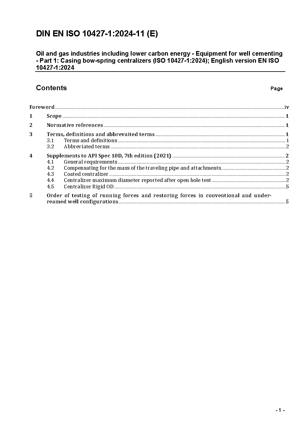 Erdöl- und Erdgasindustrie - Zentriereinrichtungen für Futterrohre - Teil 1: Federkorbzentrierer für Futterrohre (ISO 10427-1:2001); Deutsche und Englische Fassung EN ISO 10427-1:2001