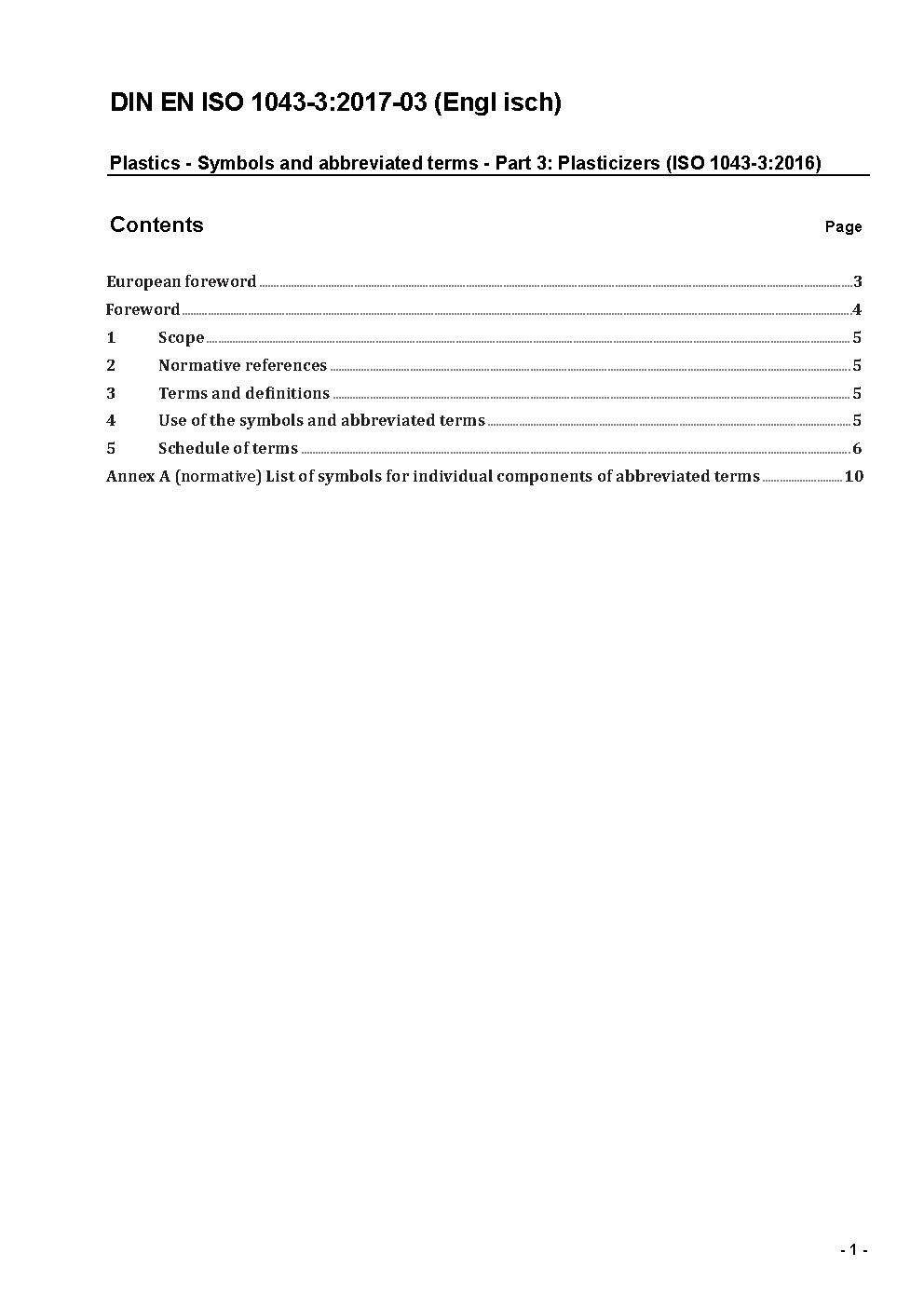 Prévu pour remplacer DIN EN ISO 1043-3 (2000-01).