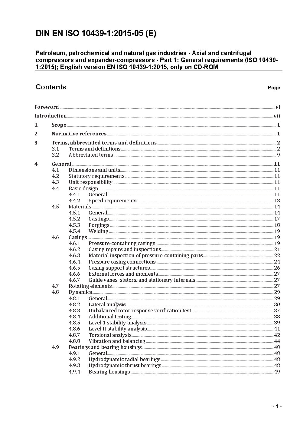 Erdöl-, petrochemische und Erdgasindustrie - Axial- und Radialkompressoren und Expanderkompressoren - Teil 1: Allgemeine Anforderungen (ISO 10439-1:2015); Englische Fassung EN ISO 10439-1:2015, nur auf CD-ROM / Achtung: CD-ROM*Gilt in Verbindung mit DIN EN ISO 10439-2 (2015-05), DIN EN ISO 10439-3 (2015-05), DIN EN ISO 10439-4 (2015-05)