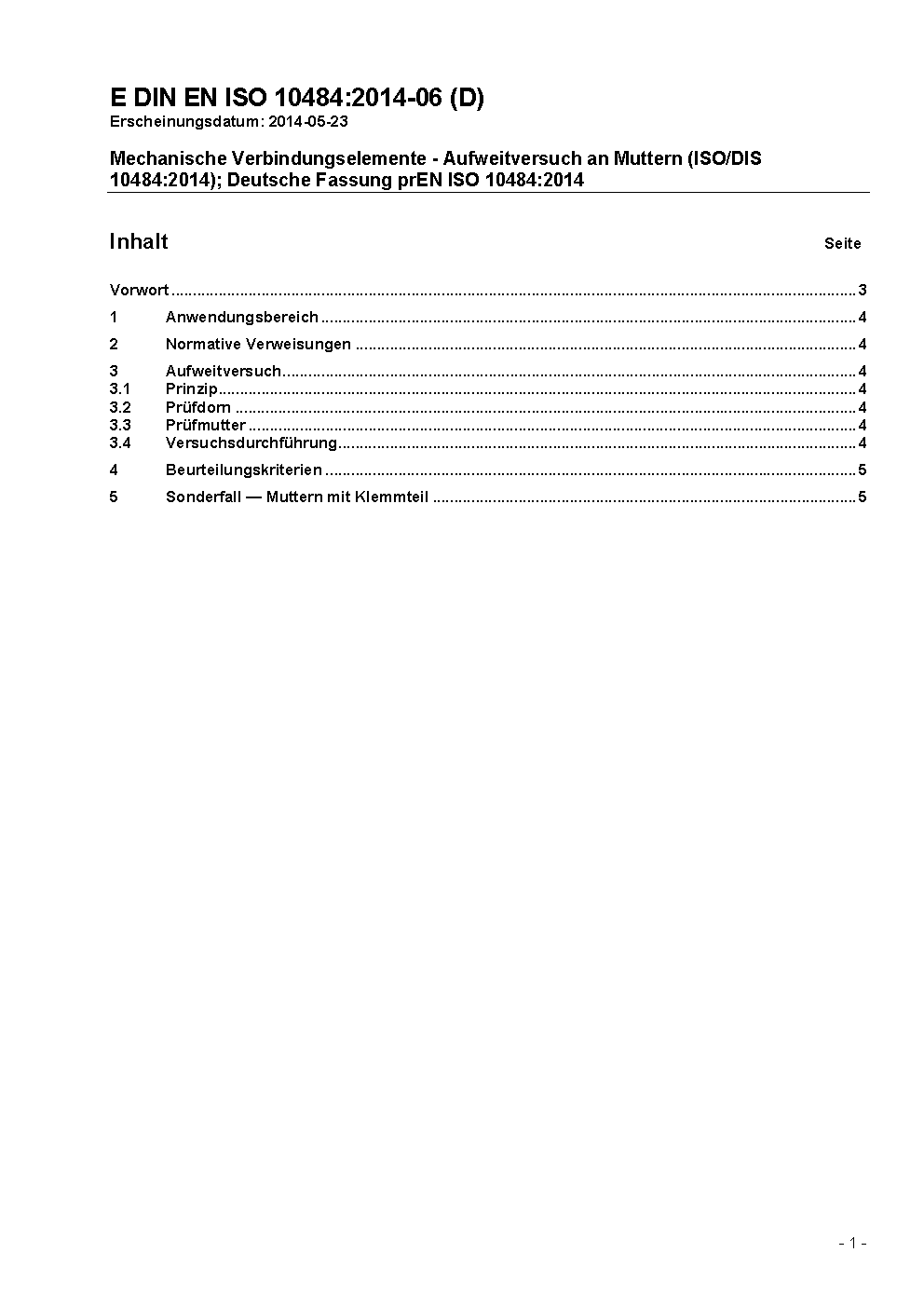 Widening test on nuts (ISO 10484:1997); German version EN ISO 10484:2004