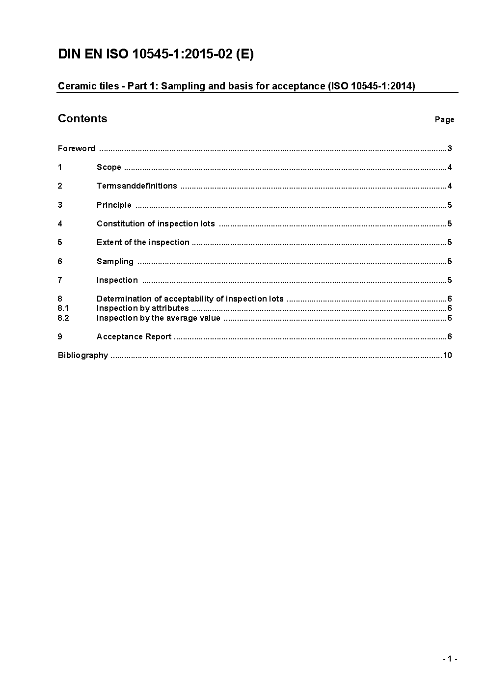 Keramische Fliesen und Platten - Teil 1: Probenahme und Grundlagen für die Annahme (ISO 10545-1:1995); Deutsche Fassung EN ISO 10545-1:1997