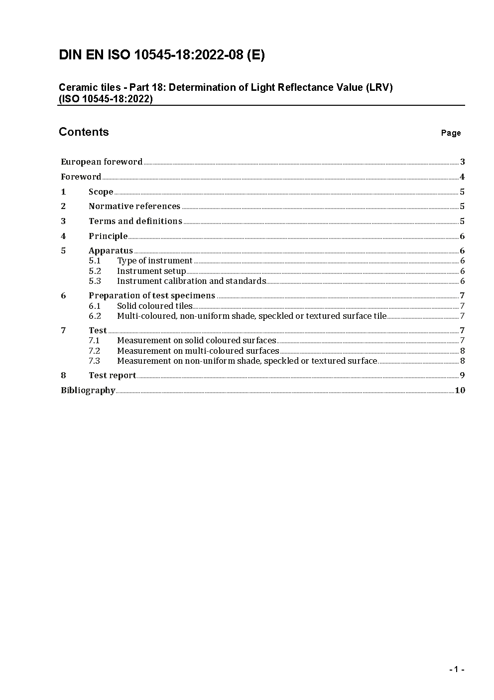 Keramische Fliesen und Platten - Teil 18: Bestimmung des Lichtreflexionswertes (LRW) (ISO 10545-18:2022); Deutsche Fassung EN ISO 10545-18:2022