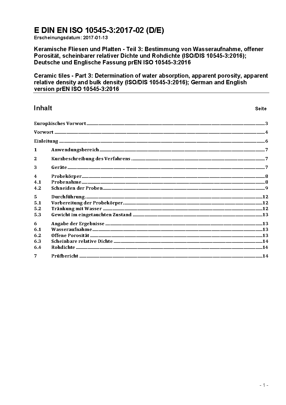 Prévu pour remplacer DIN EN ISO 10545-3 (1997-12).