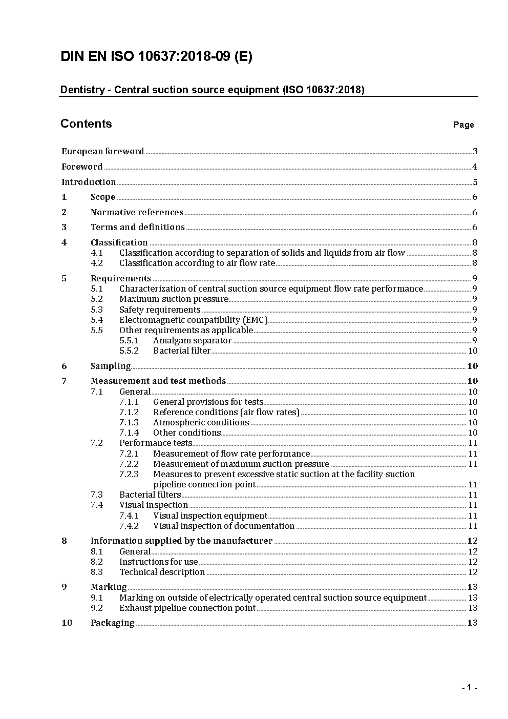 Dental equipment - High- and medium-volume suction systems (ISO 10637:1999); German version EN ISO 10637:2000