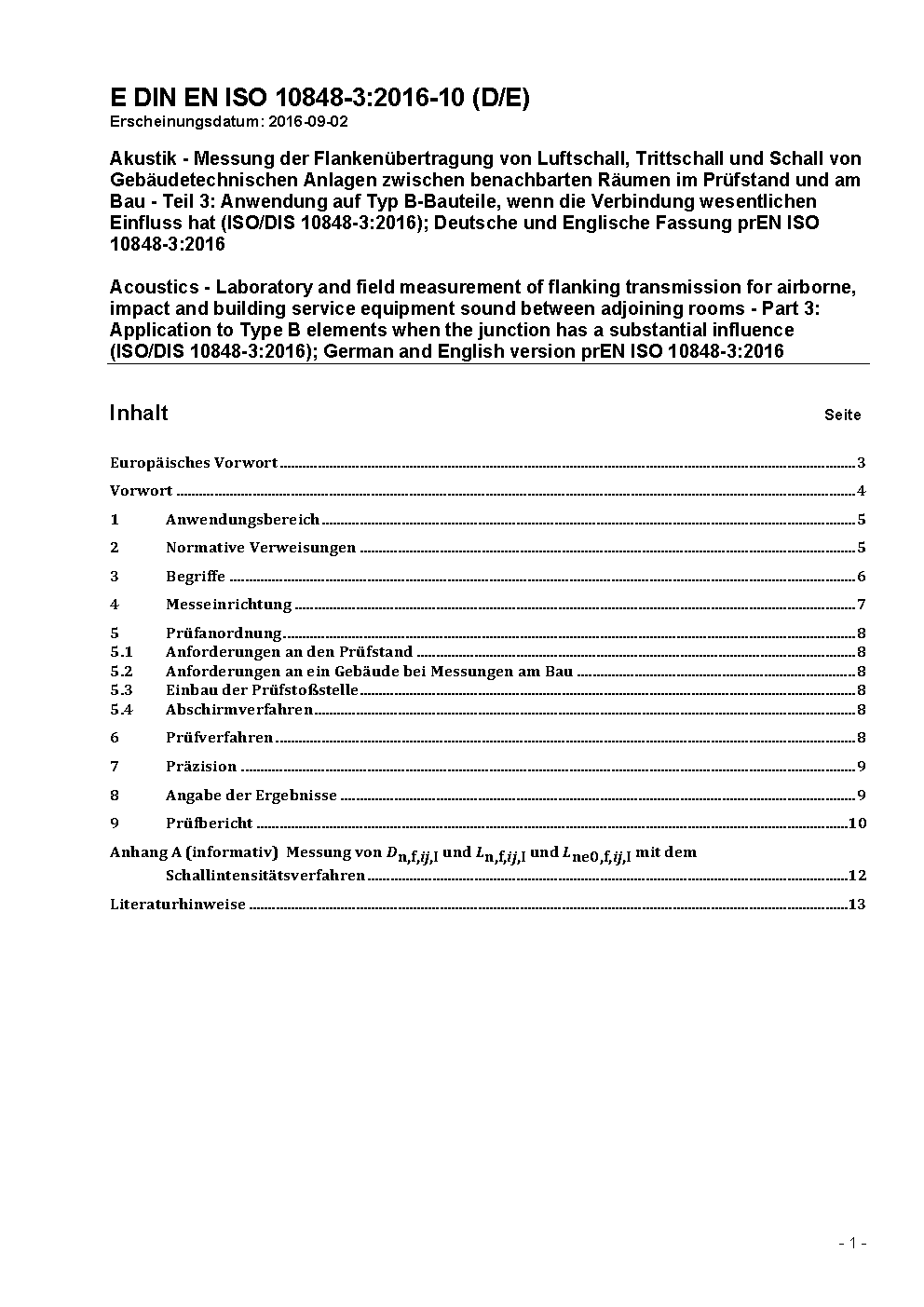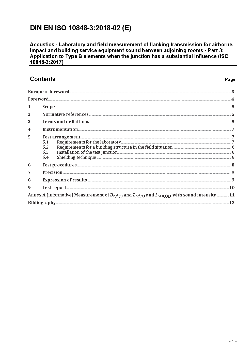 Acoustics - Laboratory and field measurement of flanking transmission for airborne, impact and building service equipment sound between adjoining rooms - Part 3: Application to Type B elements when the junction has a substantial influence (ISO 10848-3:2017); German version EN ISO 10848-3:2017
