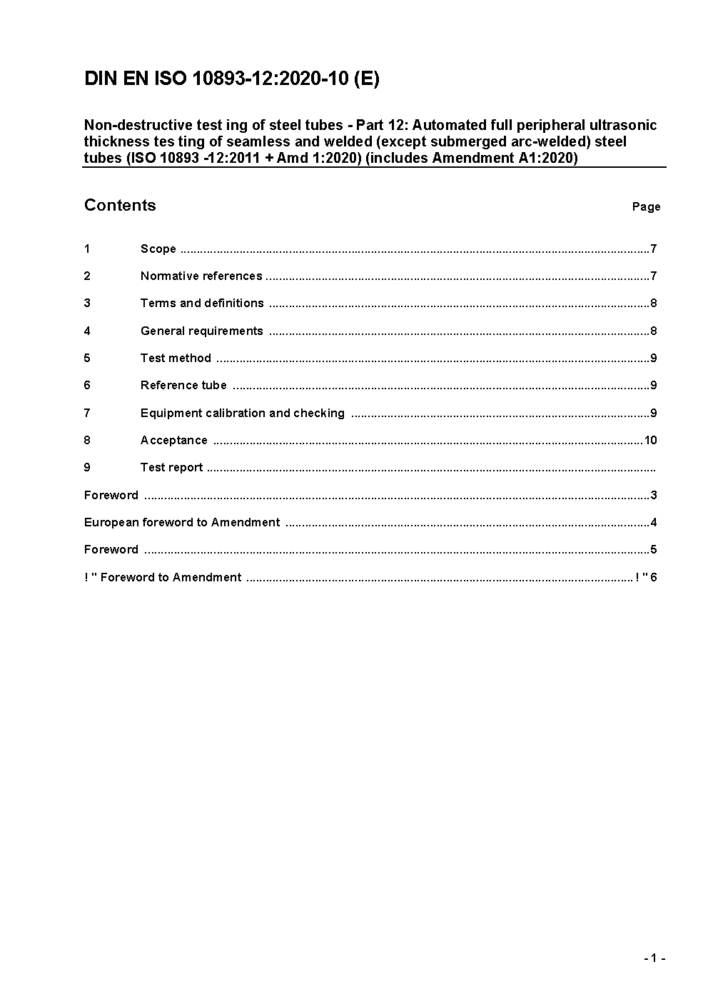 Non-destructive testing of steel tubes - Part 12: Automated full peripheral ultrasonic thickness testing of seamless and welded (except submerged arc-welded) steel tubes (ISO 10893-12:2011 + Amd 1:2020); German version EN ISO 10893-12:2011 + A1:2020