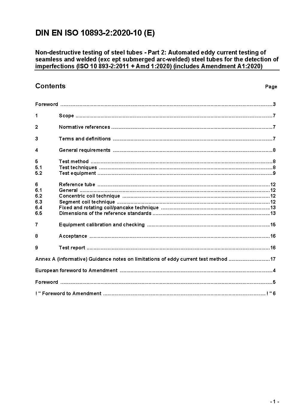 Zerstörungsfreie Prüfung von Stahlrohren - Teil 2: Automatisierte Wirbelstromprüfung nahtloser und geschweißter (ausgenommen unterpulvergeschweißter) Stahlrohre zum Nachweis von Unvollkommenheiten (ISO 10893-2:2011 + Amd 1:2020); Deutsche Fassung EN ISO 10893-2:2011 + A1:2020