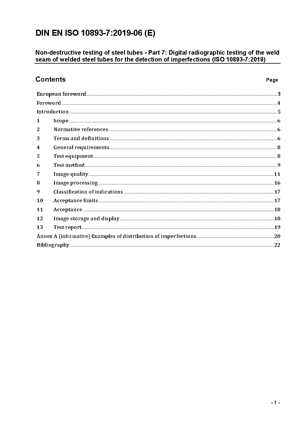 Non-destructive testing of steel tubes - Part 7: Digital radiographic testing of the weld seam of welded steel tubes for the detection of imperfections (ISO 10893-7:2019); German version EN ISO 10893-7:2019