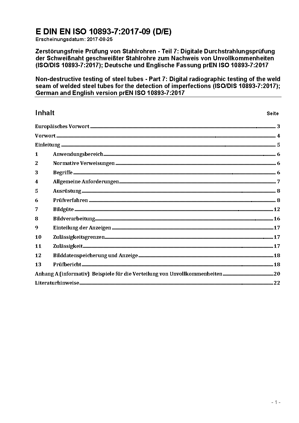 Zerstörungsfreie Prüfung von Stahlrohren - Teil 7: Digitale Durchstrahlungsprüfung der Schweißnaht geschweißter Stahlrohre zum Nachweis von Unvollkommenheiten (ISO 10893-7:2019); Deutsche Fassung EN ISO 10893-7:2019