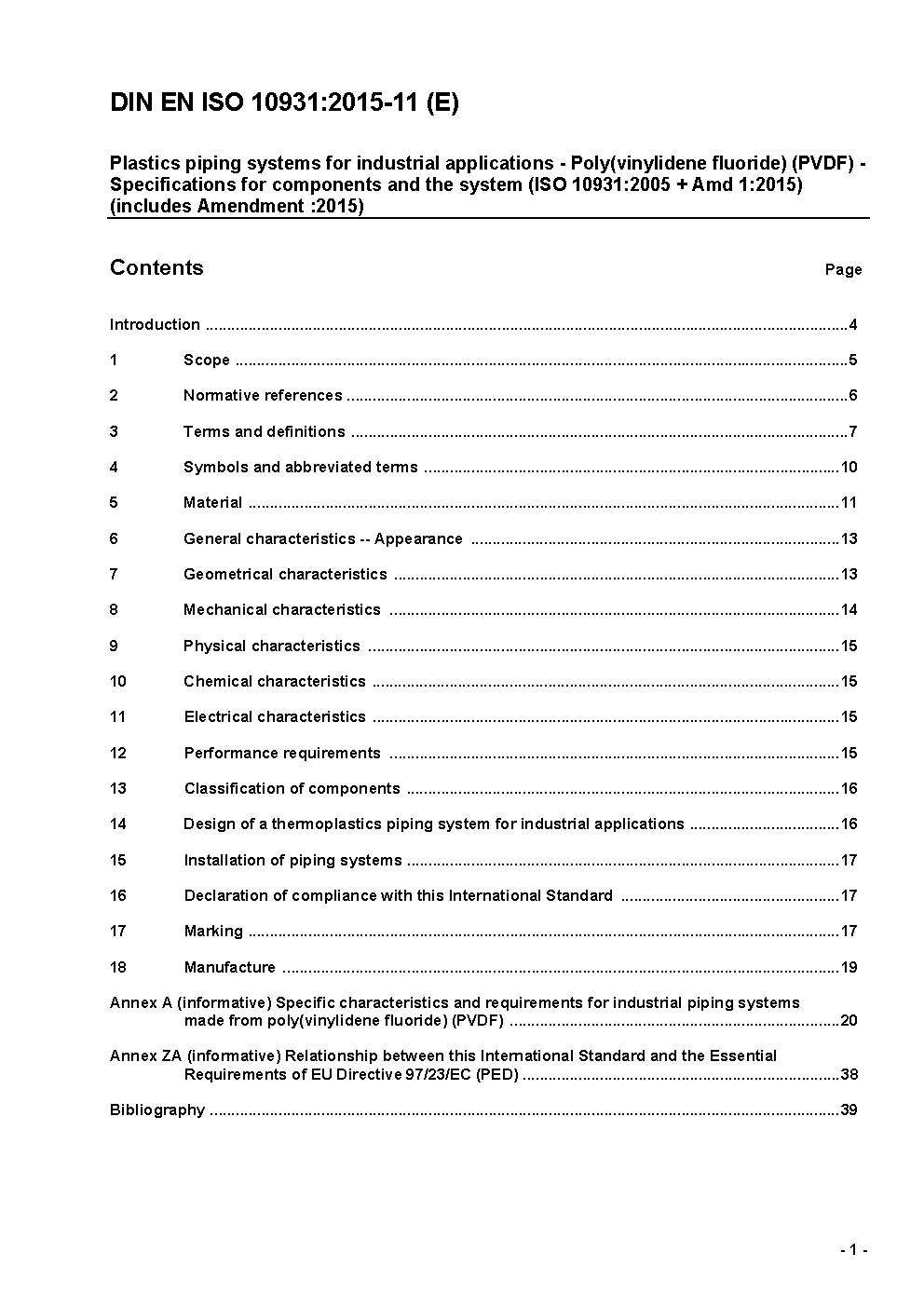 Kunststoff-Rohrleitungssysteme für industrielle Anwendungen - Polyvinyliden Fluoride (PVDF) - Anforderungen an Rohrleitungsteile und das Rohrleitungssystem (ISO 10931:2005); Deutsche Fassung EN ISO 10931:2005
