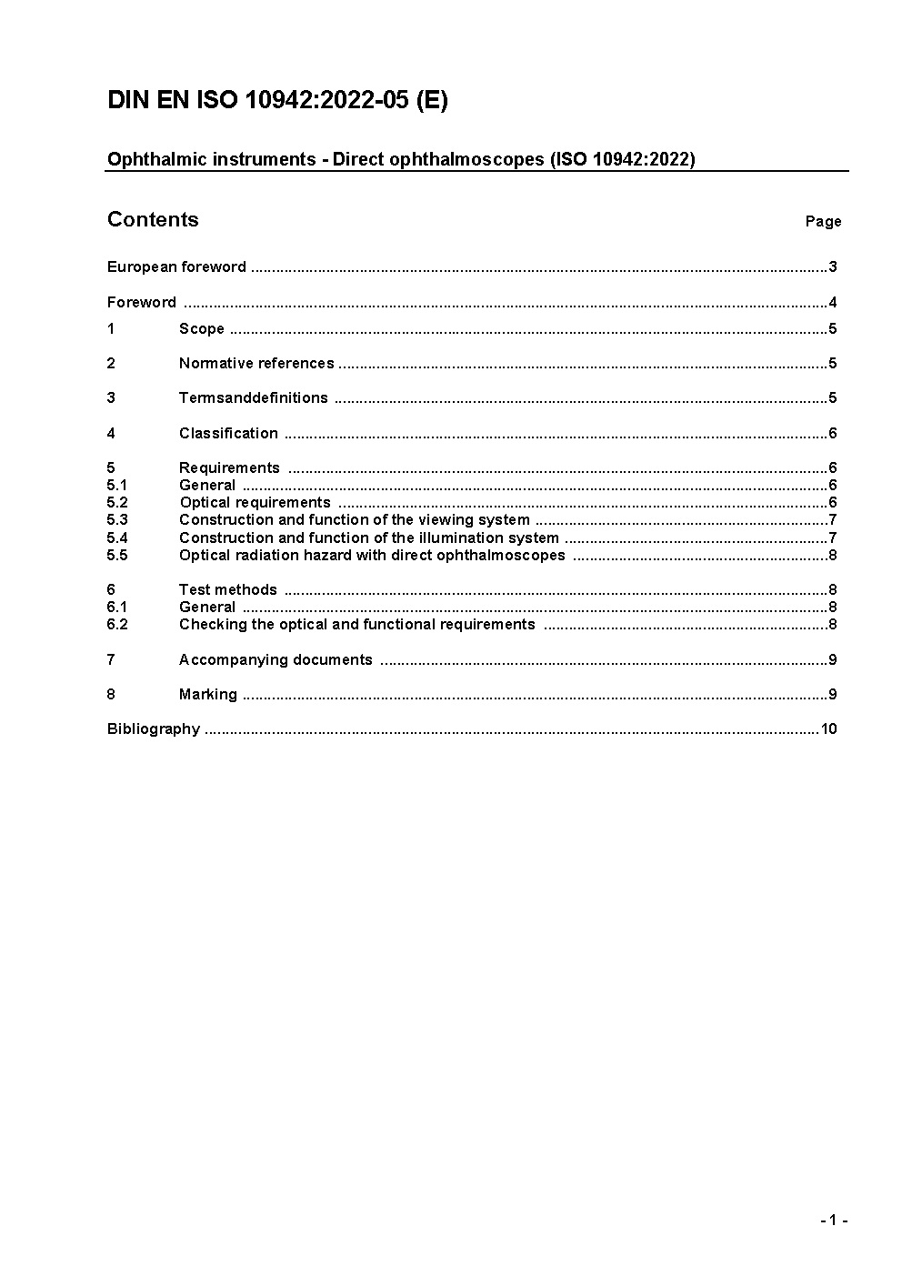 Ophthalmic instruments - Direct ophthalmoscopes (ISO 10942:2006); German version EN ISO 10942:2006