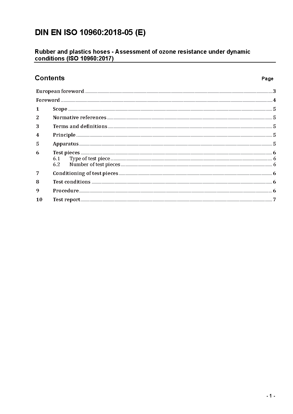 Rubber and plastics hoses - Assessment of ozone resistance under dynamic conditions (ISO/FDIS 10960:2017); German and English version prEN ISO 10960:2017