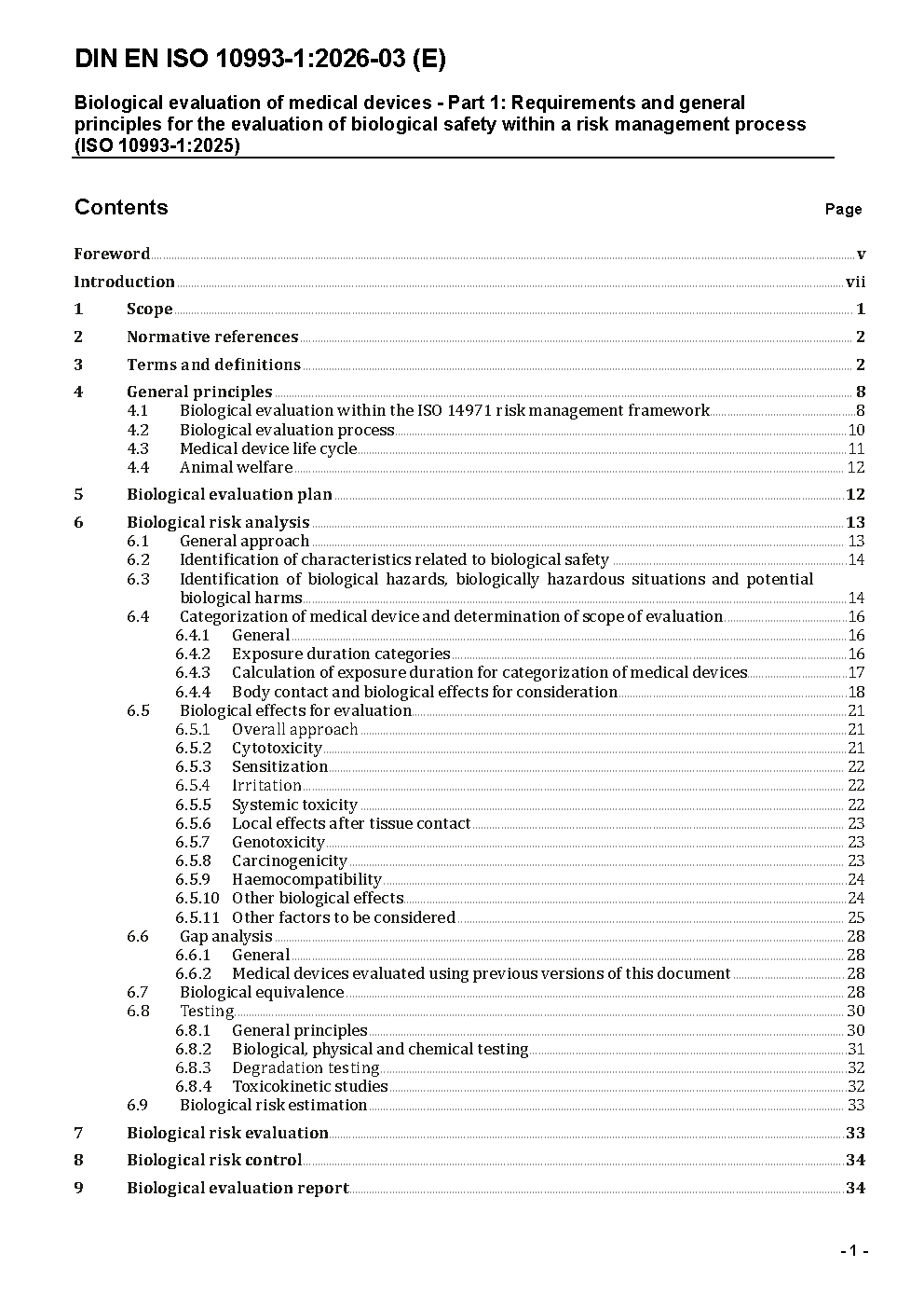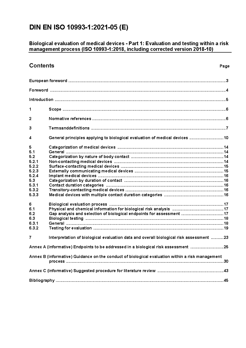 Biological evaluation of medical devices - Part 1: Evaluation and testing within a risk management system (ISO 10993-1:2009); German version EN ISO 10993-1:2009