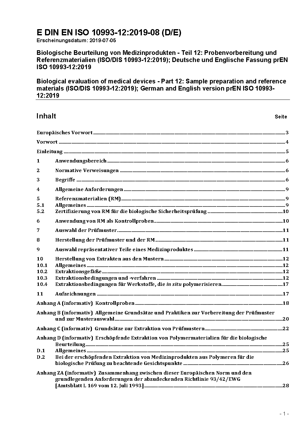 A transition period, as set out in DIN EN ISO 10993-12 (2009-08), exists until 2010-03-21.