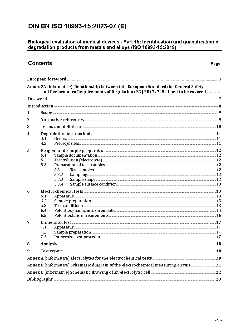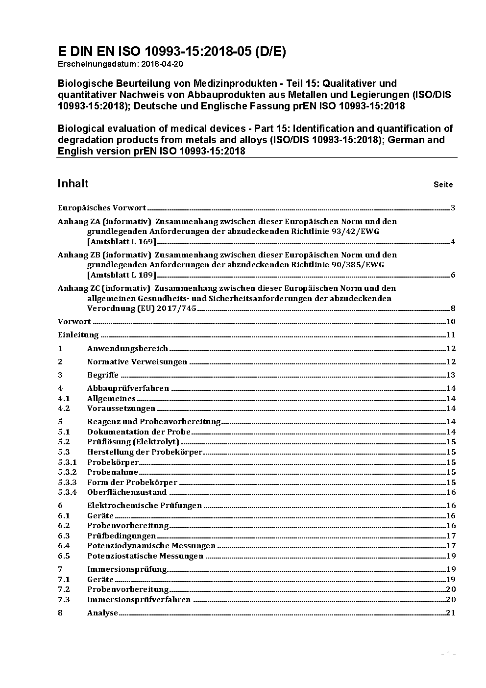 Biological evaluation of medical devices - Part 15: Identification and quantification of degradation products from metals and alloys (ISO/DIS 10993-15:2018); German and English version prEN ISO 10993-15:2018