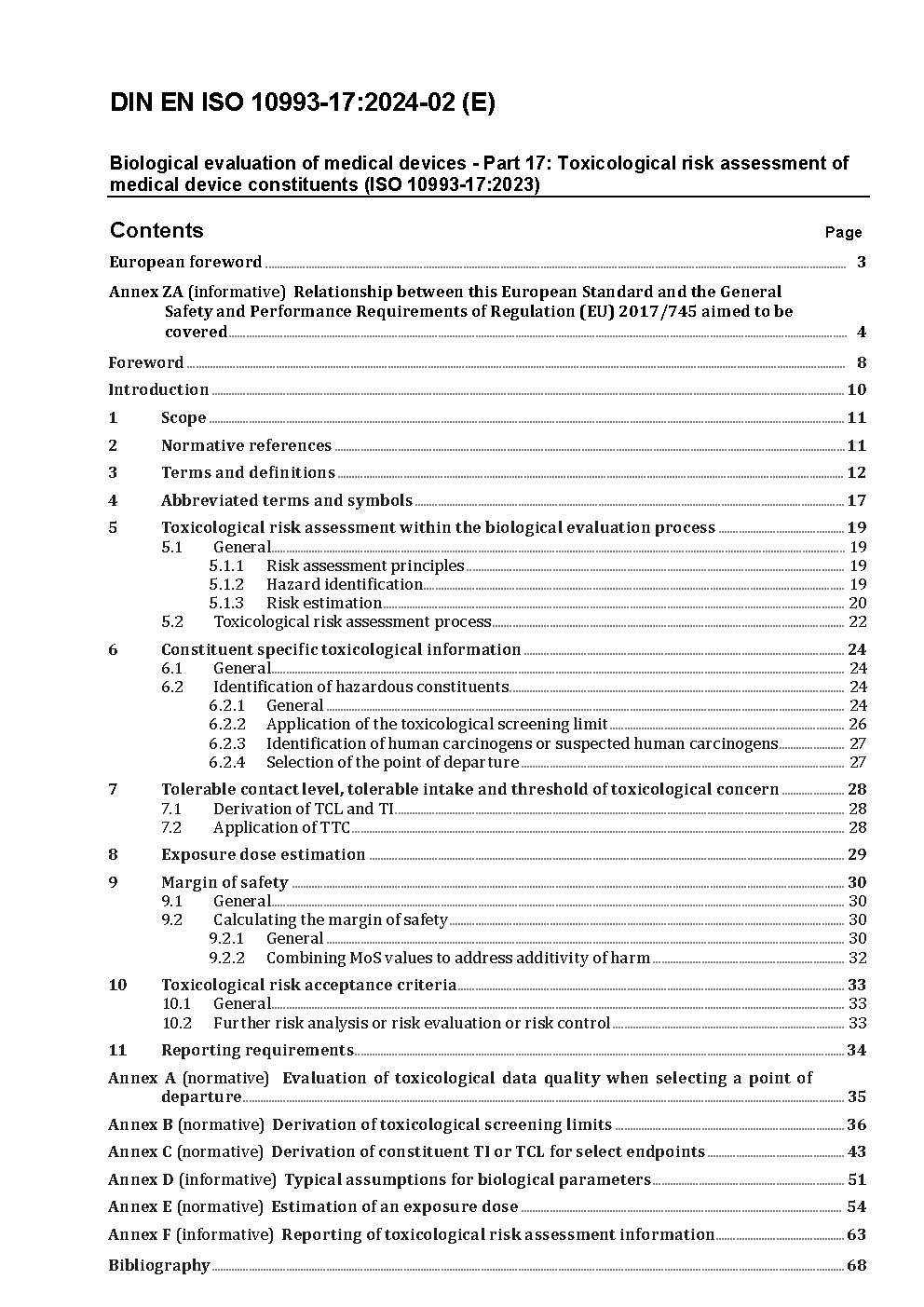 Biological evaluation of medical devices - Part 17: Methods for the establishment of allowable limits for leachable substances using health-based risk assessment (ISO/DIS 10993-17:1999); German version prEN ISO 10993-17:1999