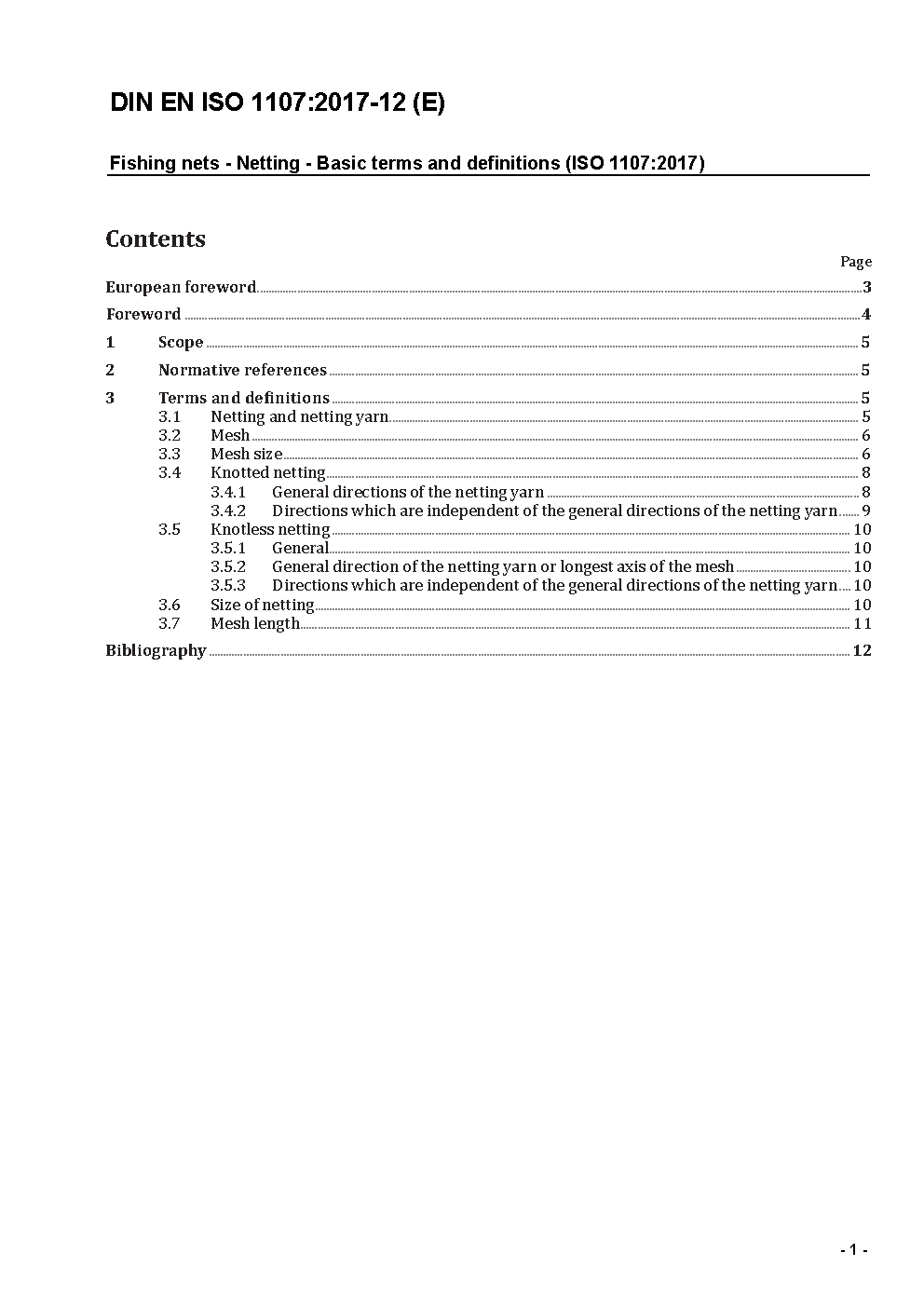 Fishing nets - Netting - Basic terms and definitions (ISO 1107:2003); German version EN ISO 1107:2003