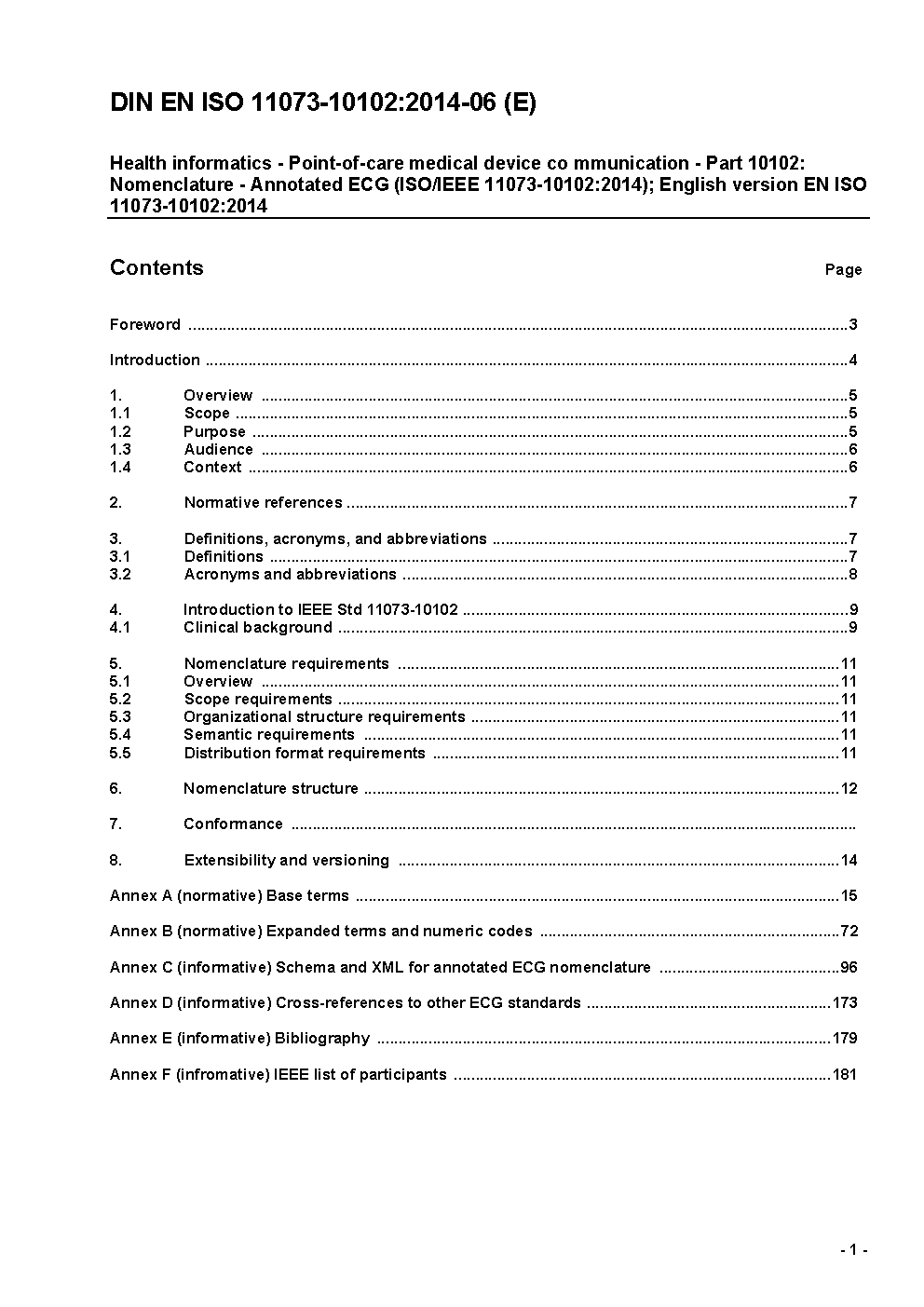 Medizinische Informatik - Kommunikation patientennaher medizinischer Geräte - Teil 10102: Nomenklatur - Mit Annotationen versehenes EKG (ISO/IEEE FDIS 11073-10102:2013); Englische Fassung FprEN ISO 11073-10102:2013
