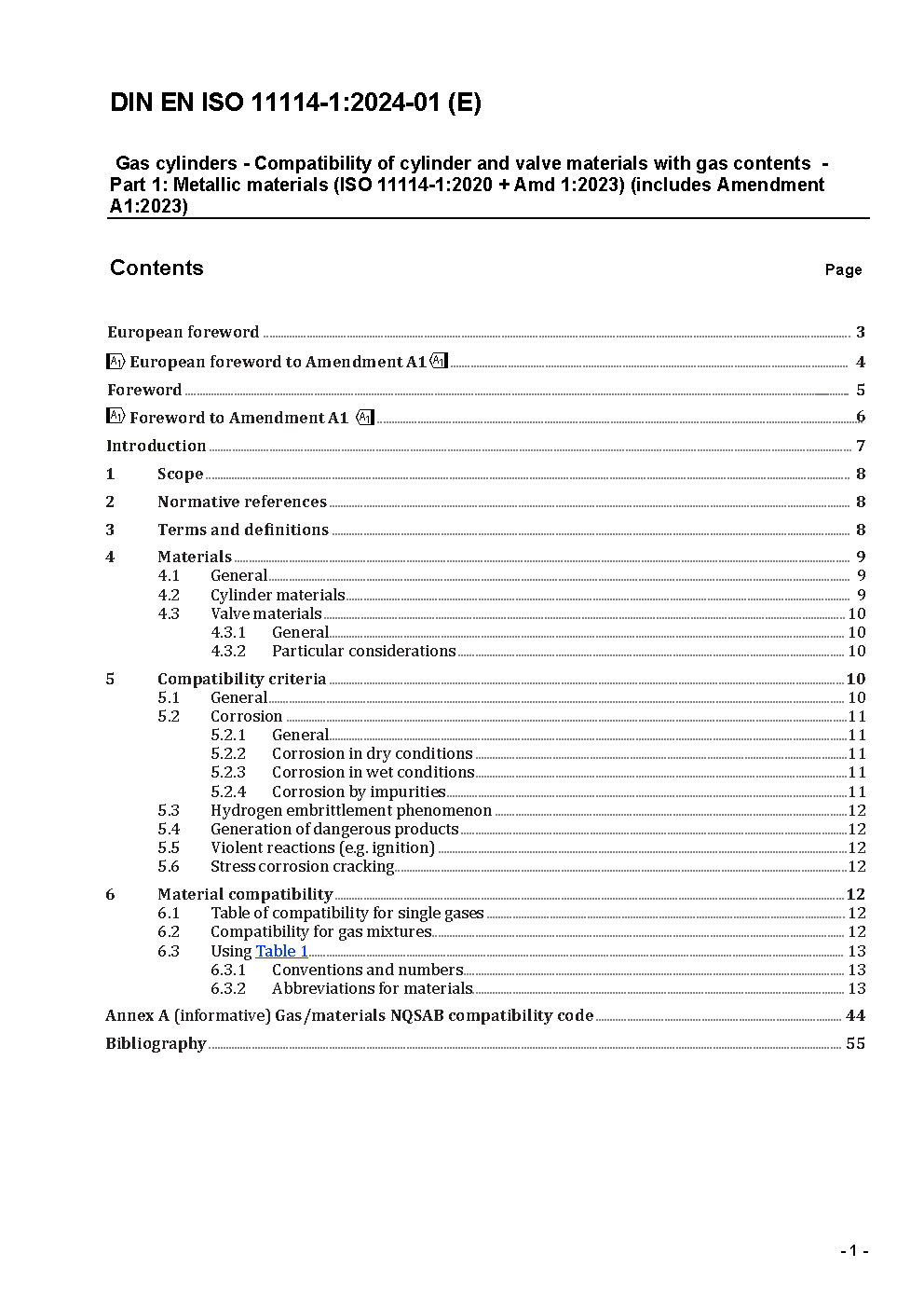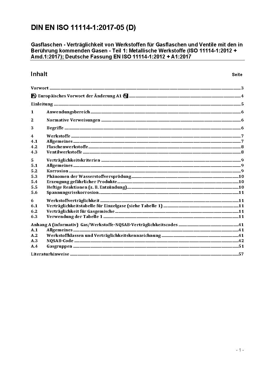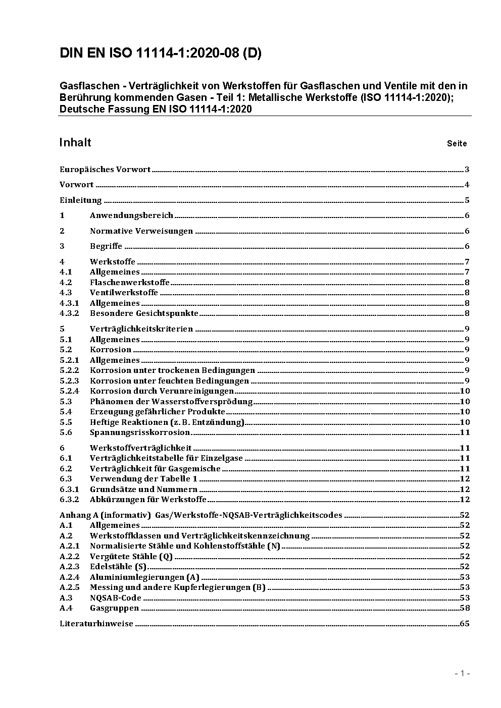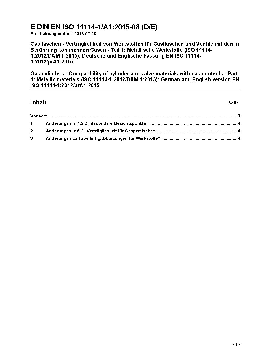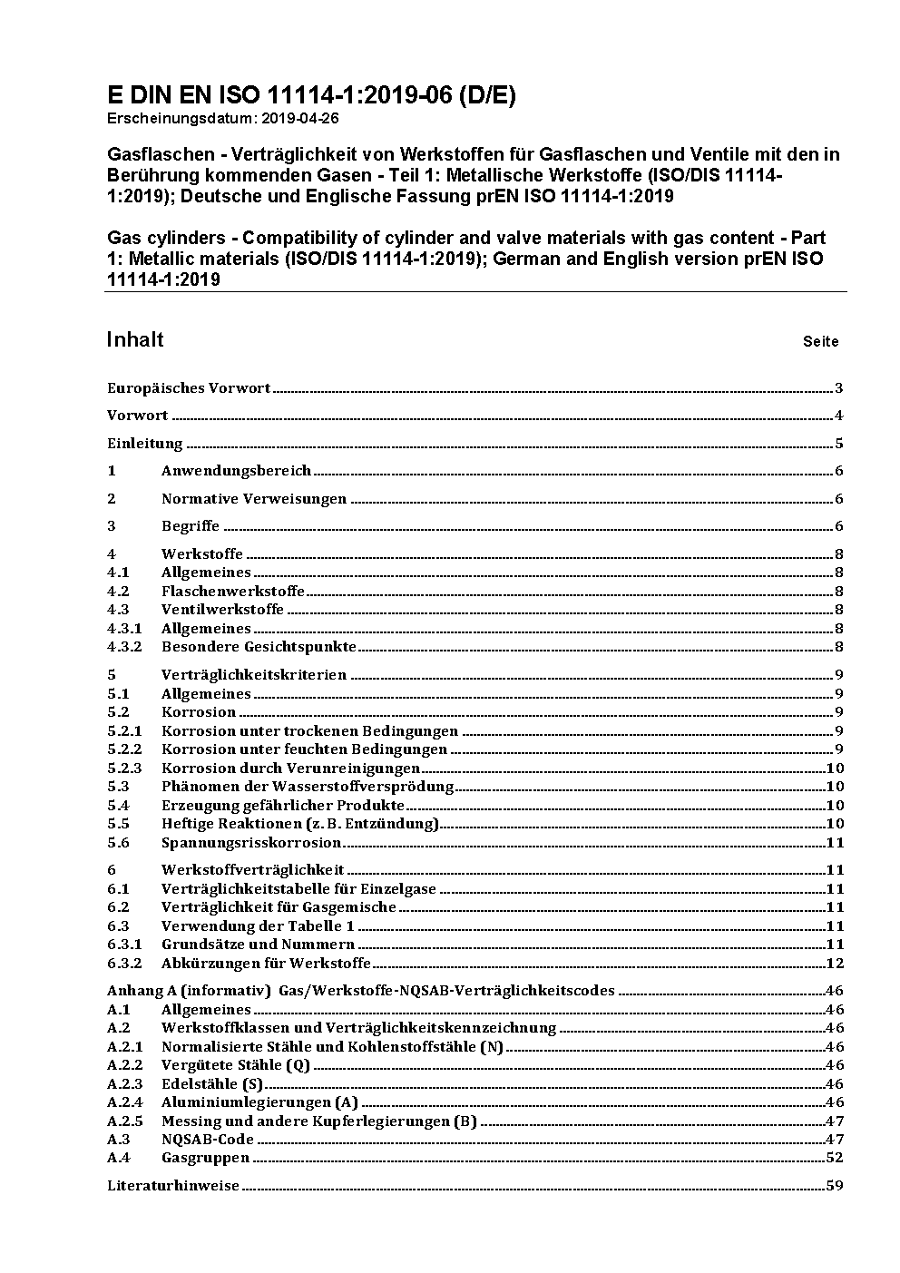 Ortsbewegliche Gasflaschen - Verträglichkeit von Werkstoffen für Gasflaschen und Ventile mit den in Berührung kommenden Gasen - Teil 1: Metallische Werkstoffe (ISO/DIS 11114-1:1995); Deutsche Fassung prEN ISO 11114-1:1995