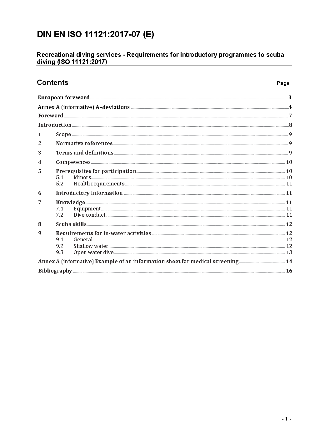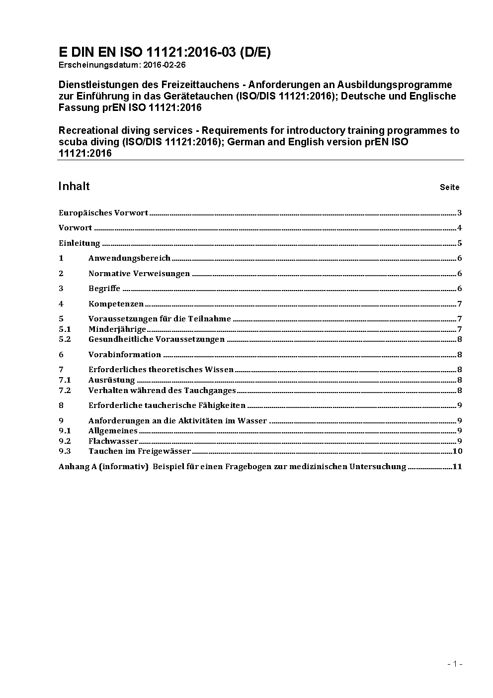 Recreational diving services - Requirements for introductory programmes to scuba diving (ISO 11121:2017); German version EN ISO 11121:2017