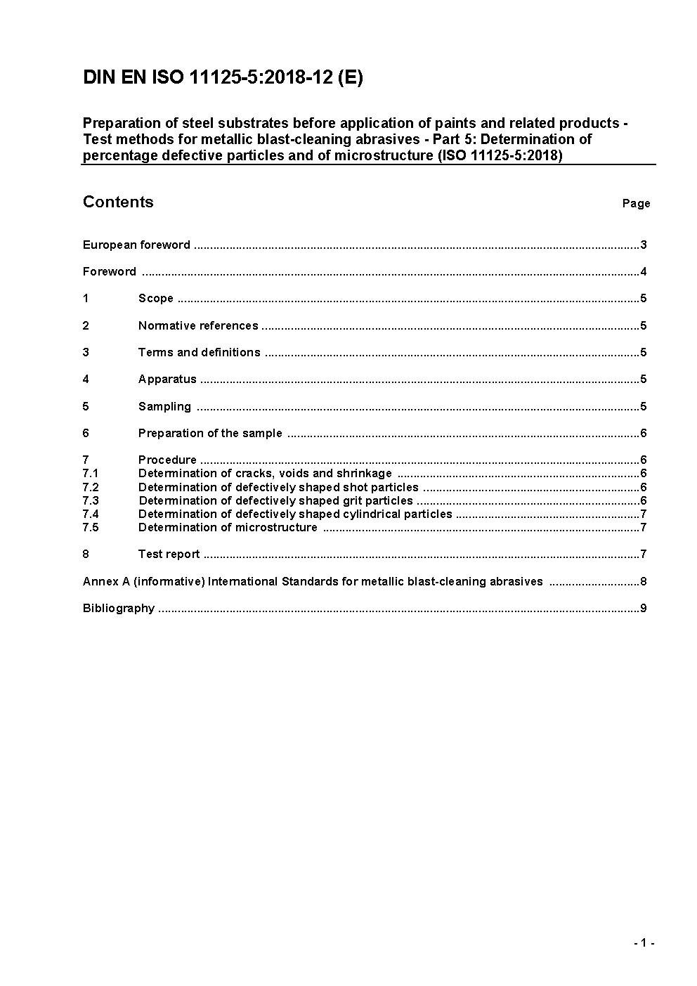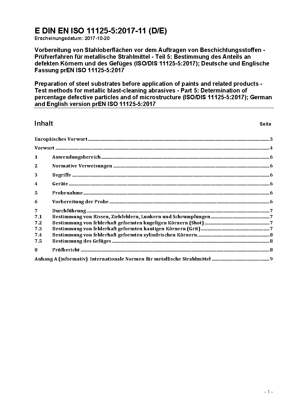Vorbereitung von Stahloberflächen vor dem Auftragen von Beschichtungsstoffen - Prüfverfahren für metallische Strahlmittel - Teil 5: Bestimmung des Anteils an defekten Körnern und des Gefüges (ISO 11125-5:2018); Deutsche Fassung EN ISO 11125-5:2018