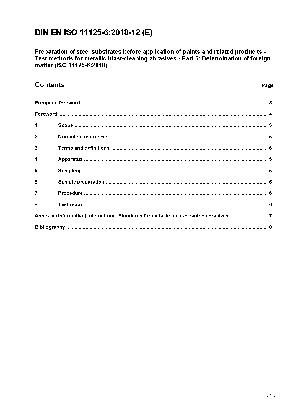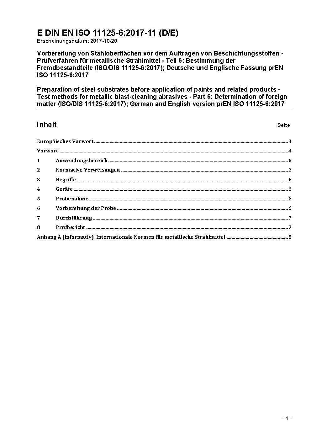 Vorbereitung von Stahloberflächen vor dem Auftragen von Beschichtungsstoffen - Prüfverfahren für metallische Strahlmittel - Teil 6: Bestimmung der Fremdbestandteile (ISO 11125-6:2018); Deutsche Fassung EN ISO 11125-6:2018