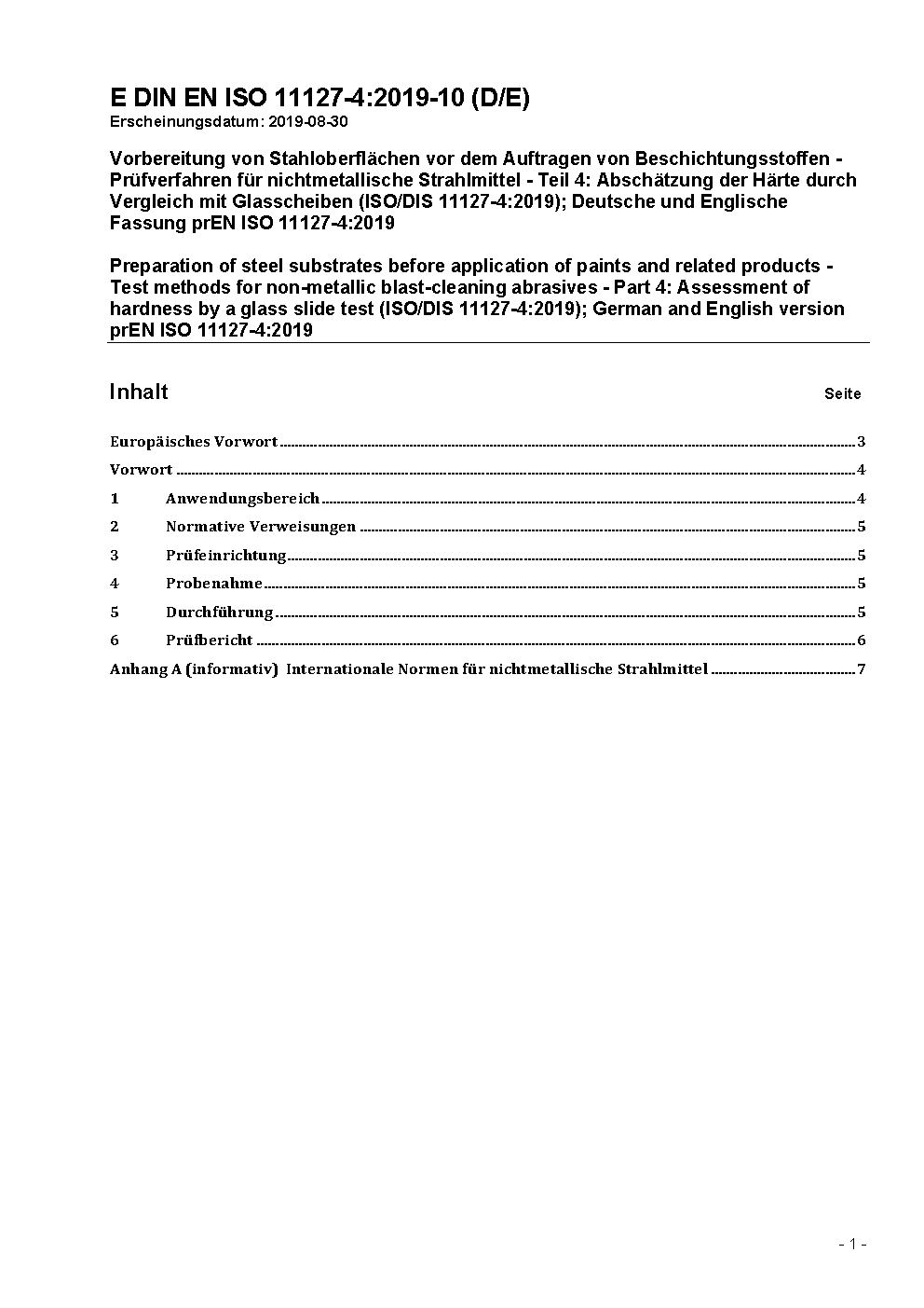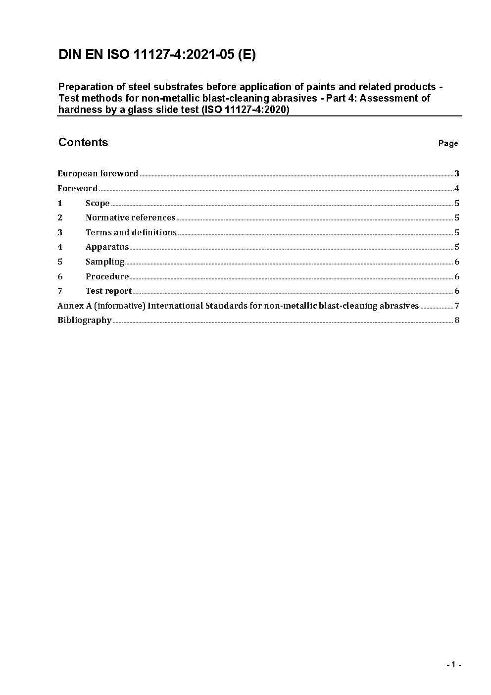 Preparation of steel substrates before application of paints and related products - Test methods for non-metallic blast-cleaning abrasives - Part 4: Assessment of hardness by a glass slide test (ISO 11127-4:2020); German version EN ISO 11127-4:2020