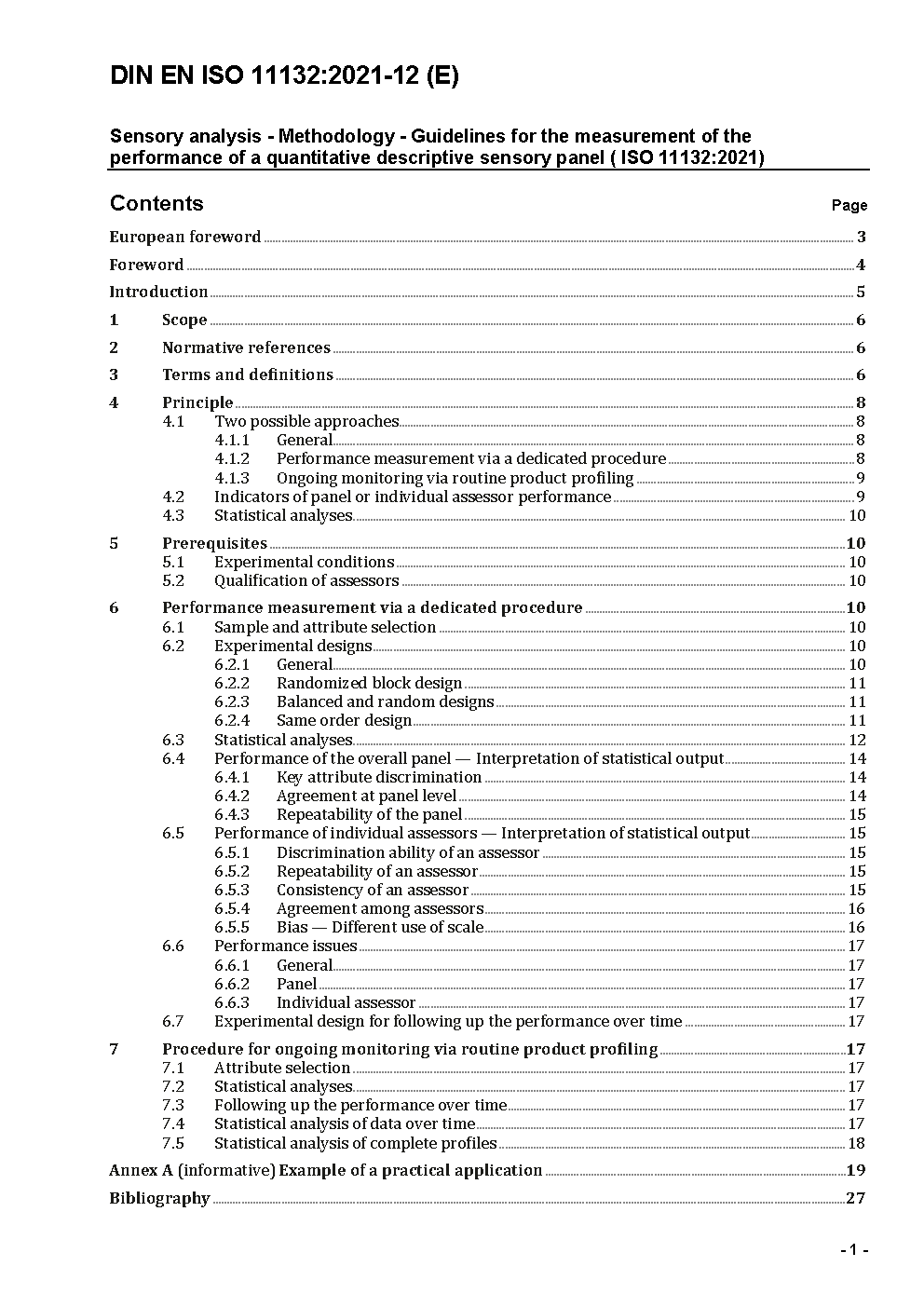 Sensory analysis - Methodology - Guidelines for monitoring the performance of a quantitative sensory panel (ISO 11132:2012); German version EN ISO 11132:2017