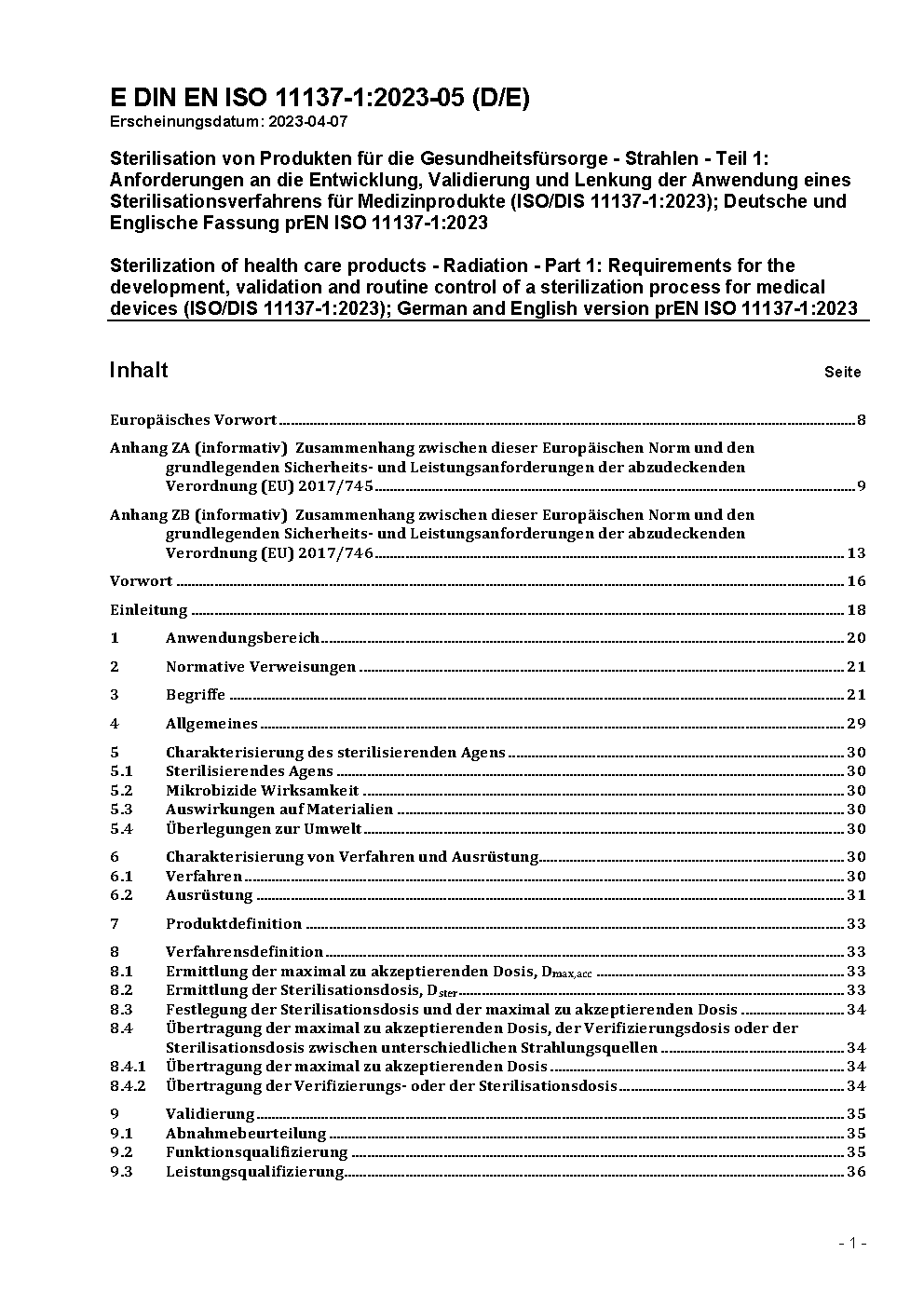 Prévu comme amendement à DIN EN ISO 11137-1 (2015-11).