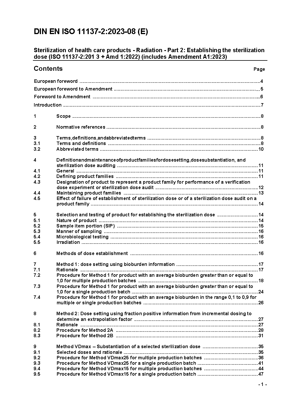 Sterilization of health care products - Radiation - Part 2: Establishing the sterilization dose (ISO 11137-2:2006, corrected version 2006-08-01); German version EN ISO 11137-2:2007