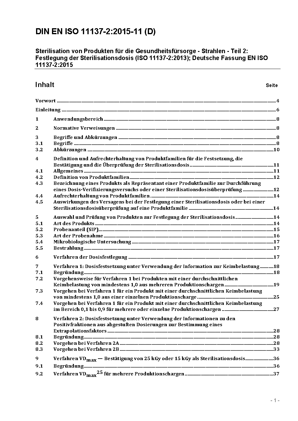 Sterilisation von Produkten für die Gesundheitsfürsorge - Strahlen - Teil 2: Festlegung der Sterilisationsdosis (ISO 11137-2:2006, korrigierte Fassung 2006-08-01); Deutsche Fassung EN ISO 11137-2:2007