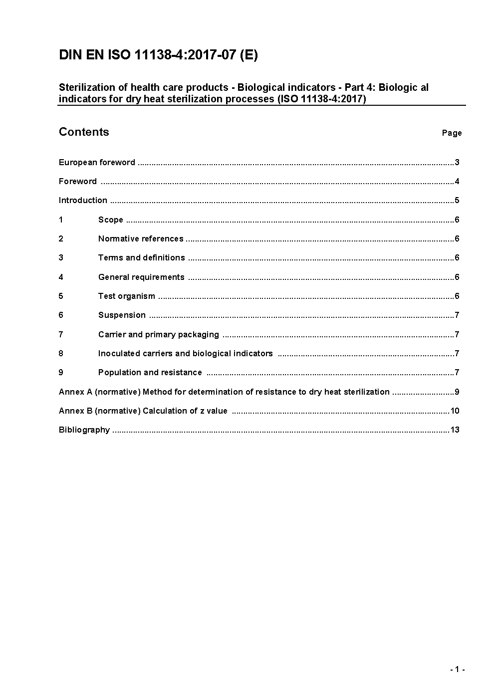 Sterilization of health care products - Biological indicators - Part 4: Biological indicators for dry heat sterilization processes (ISO 11138-4:2006); German version EN ISO 11138-4:2006