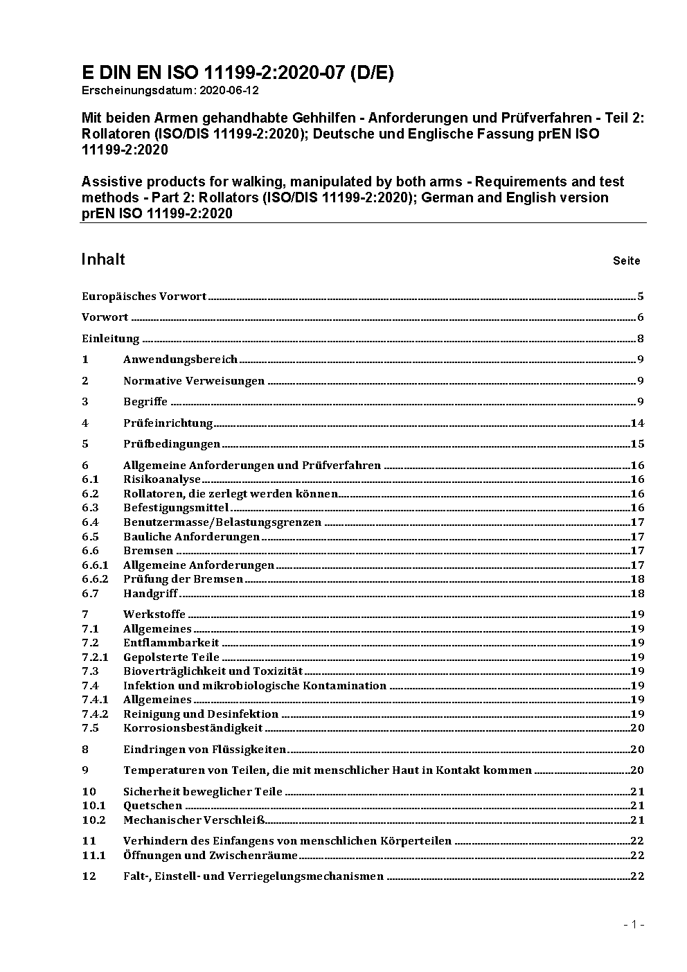Assistive products for walking, manipulated by both arms - Requirements and test methods - Part 2: Rollators (ISO/DIS 11199-2:2020); German and English version prEN ISO 11199-2:2020
