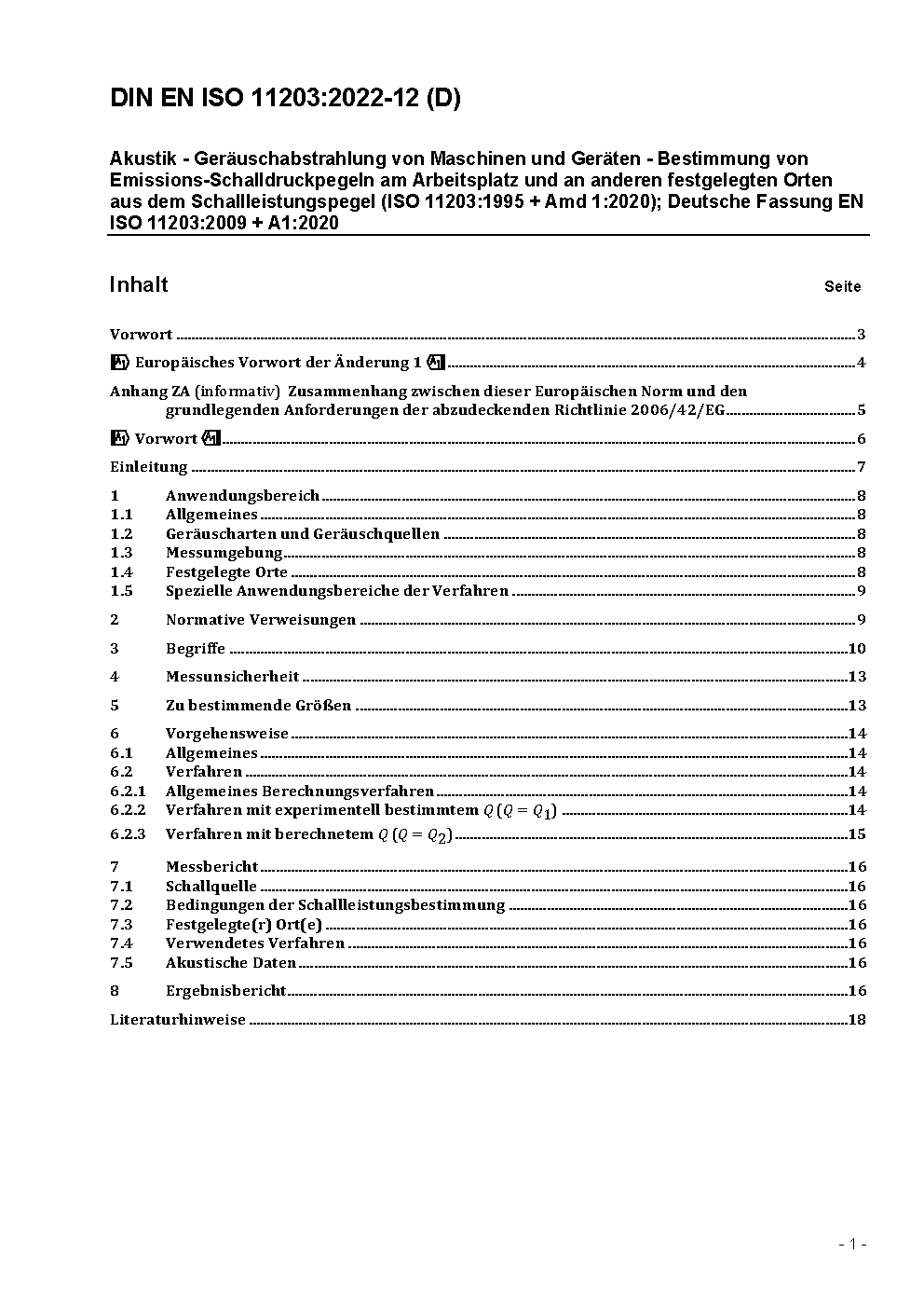 Akustik - Geräuschabstrahlung von Maschinen und Geräten - Bestimmung von Emissions-Schalldruckpegeln am Arbeitsplatz und an anderen festgelegten Orten aus dem Schalleistungspegel (ISO 11203:1995); Deutsche Fassung EN ISO 11203:1995