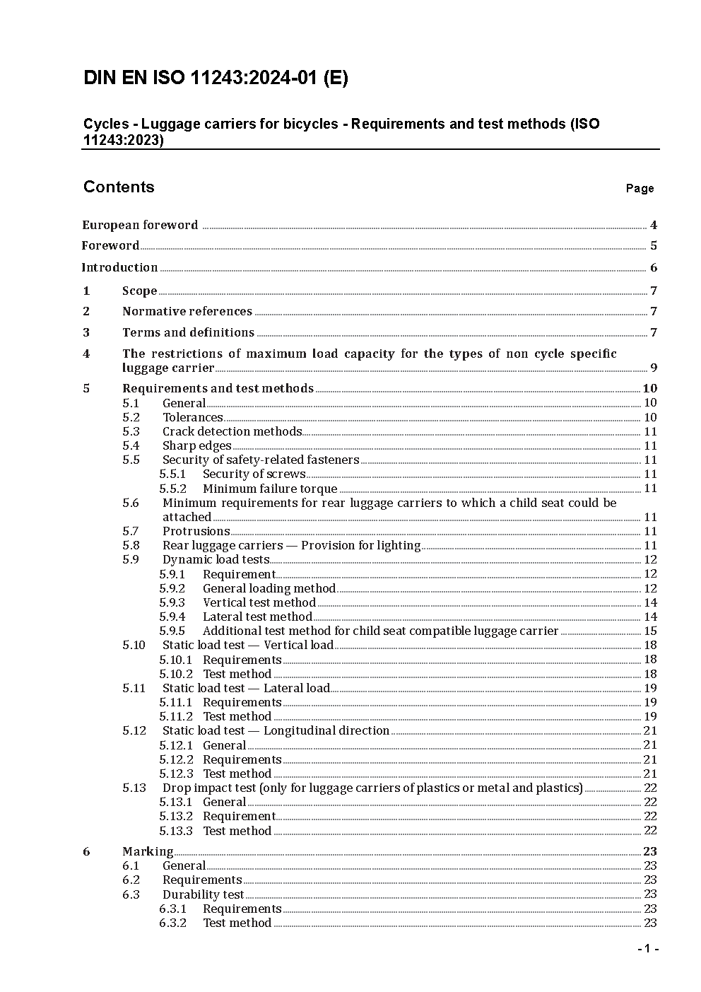 Cycles - Luggage carriers for bicycles - Requirements and test methods (ISO/DIS 11243:2014); German version prEN ISO 11243:2014