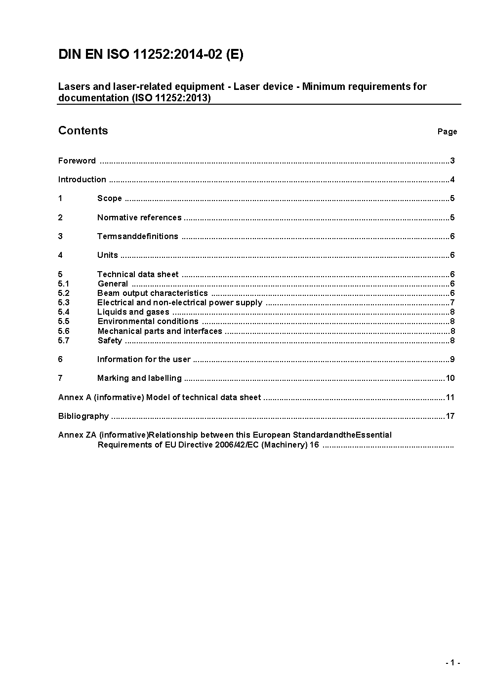 Lasers and laser-related equipment - Laser device - Minimum requirements for documentation (ISO 11252:2004); German version EN ISO 11252:2004.