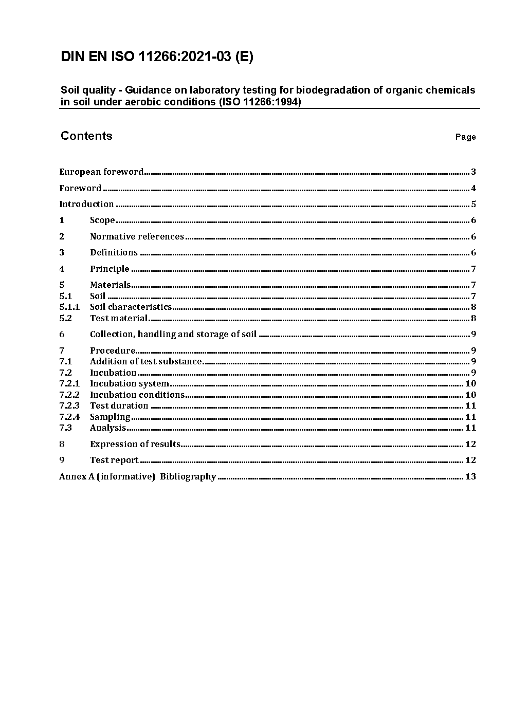 Bodenbeschaffenheit - Anleitung für Laboratoriumsuntersuchungen zur biologischen Abbaubarkeit von organischen Chemikalien im Boden unter aeroben Bedingungen (ISO 11266:1994); Deutsche Fassung EN ISO 11266:2020