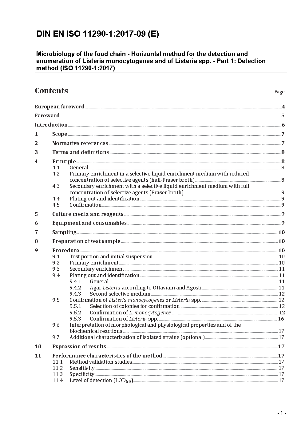 Microbiology of food and animal feeding stuffs - Horizontal method for the detection and enumeration of Listeria monocytogenes - Part 1: Detection method (ISO/DIS 11290-1:1995); German version prEN ISO 11290-1:1995