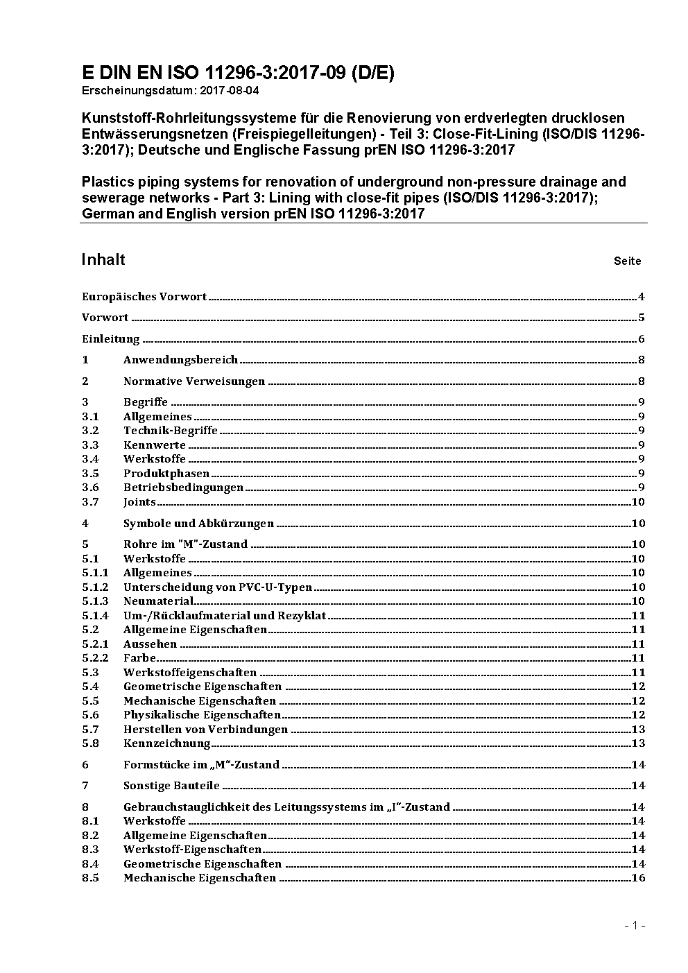 Kunststoff-Rohrleitungssysteme für die Renovierung von erdverlegten drucklosen Entwässerungsnetzen (Freispiegelleitungen) - Teil 3: Close-Fit-Lining (ISO 11296-3:2009+Cor.1:2011); Deutsche Fassung EN ISO 11296-3:2011