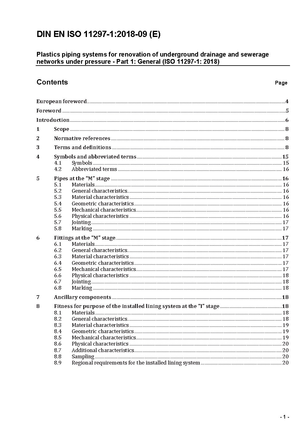 Plastics piping systems for renovation of underground drainage and sewerage networks under pressure - Part 1: General (ISO/DIS 11297-1:2012); German version prEN ISO 11297-1:2012