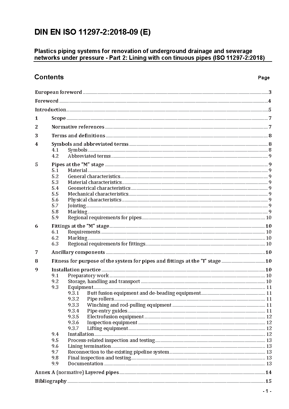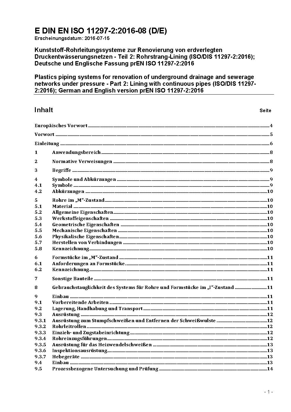 Kunststoff-Rohrleitungssysteme für die Renovierung von erdverlegten Abwasserdruckleitungen - Teil 2: Rohrstrang-Lining (ISO 11297-2:2018); Deutsche Fassung EN ISO 11297-2:2018