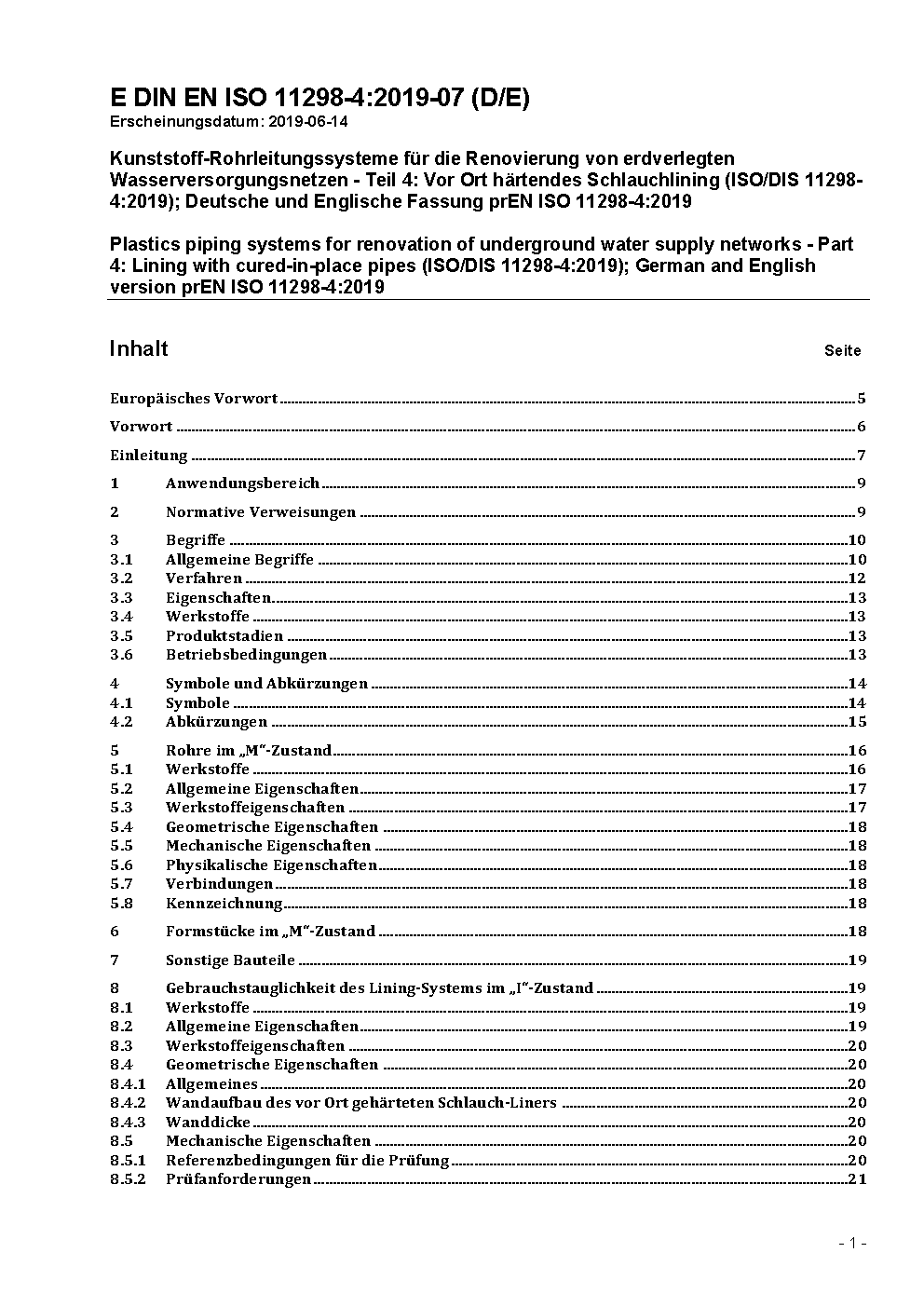 Plastics piping systems for renovation of underground water supply networks - Part 4: Lining with cured-in-place pipes (ISO/DIS 11298-4:2019); German and English version prEN ISO 11298-4:2019