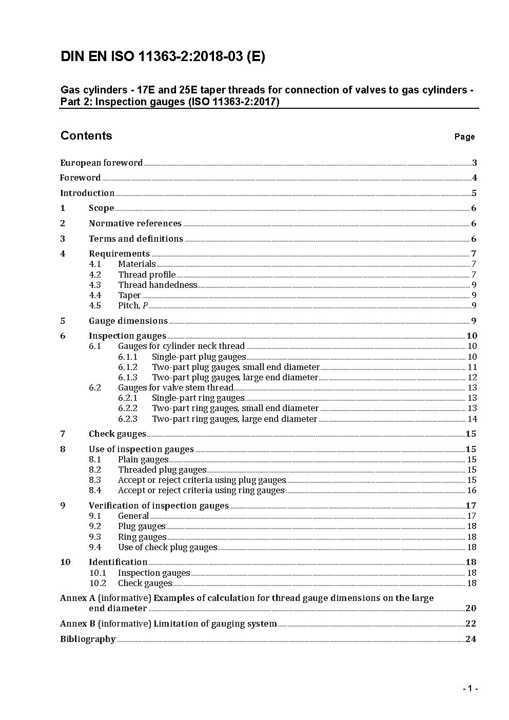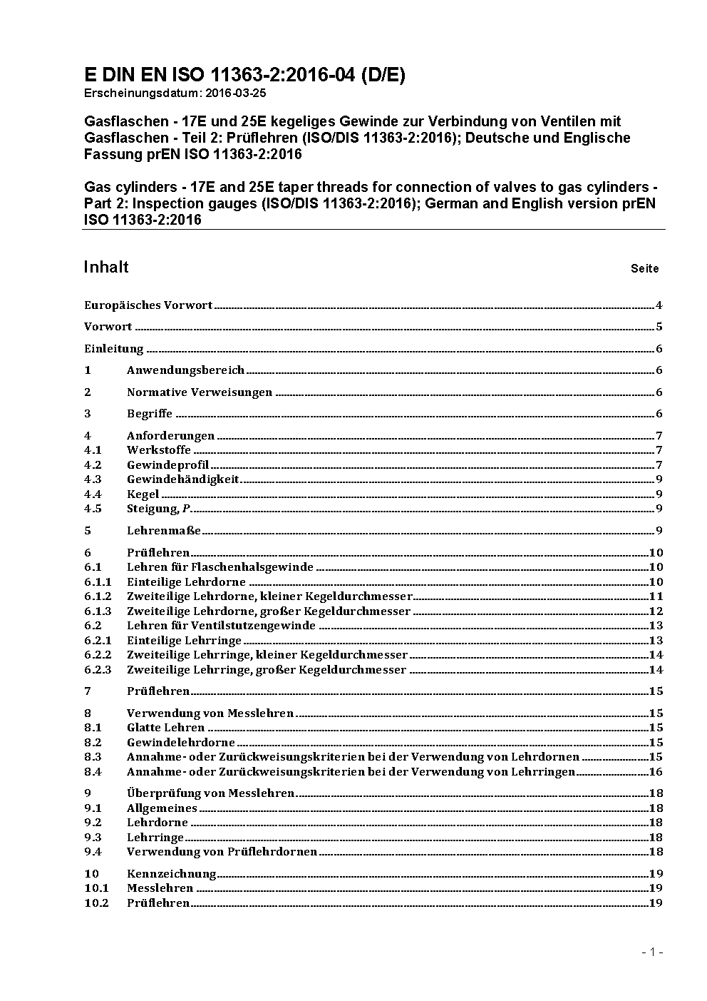 Gas cylinders - 17E and 25E taper threads for connection of valves to gas cylinders - Part 2: Inspection gauges (ISO 11363-2:2017); German version EN ISO 11363-2:2017