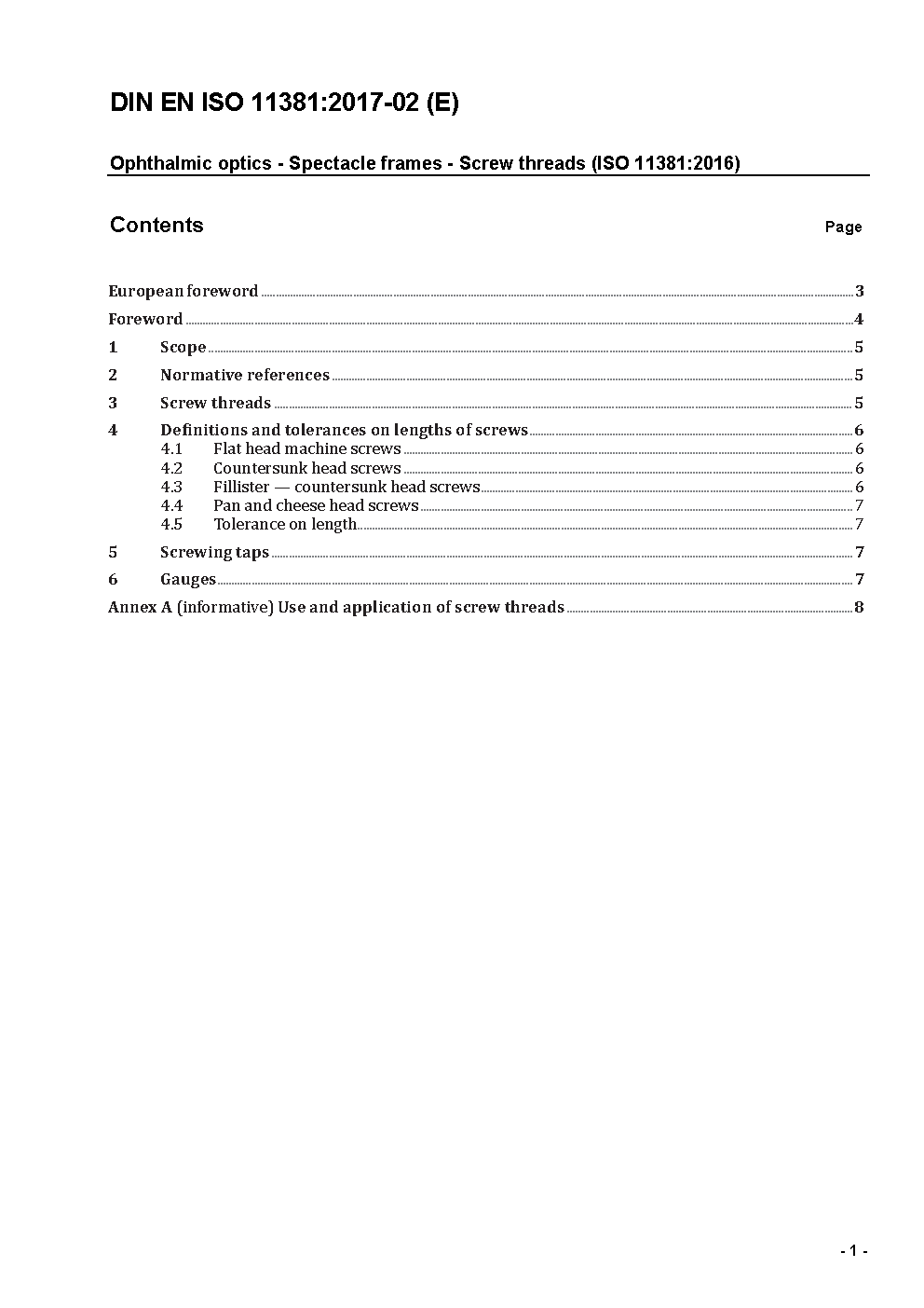 Optik und optische Instrumente - Augenoptik - Schraubgewinde (ISO 11381:1994); Deutsche Fassung EN ISO 11381:1996