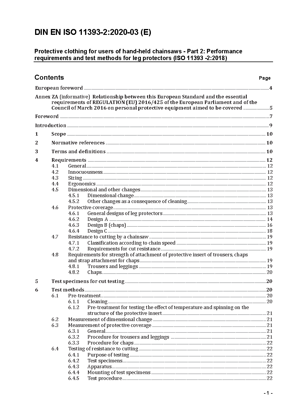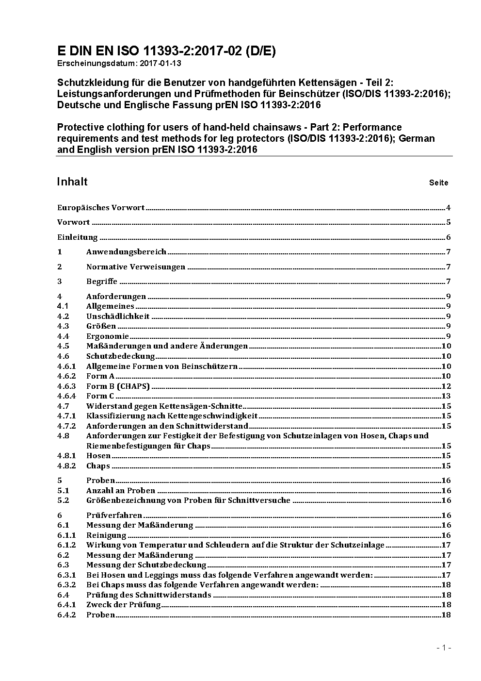 Protective clothing for users of hand-held chainsaws - Part 2: Performance requirements and test methods for leg protectors (ISO 11393-2:2018); German version EN ISO 11393-2:2019