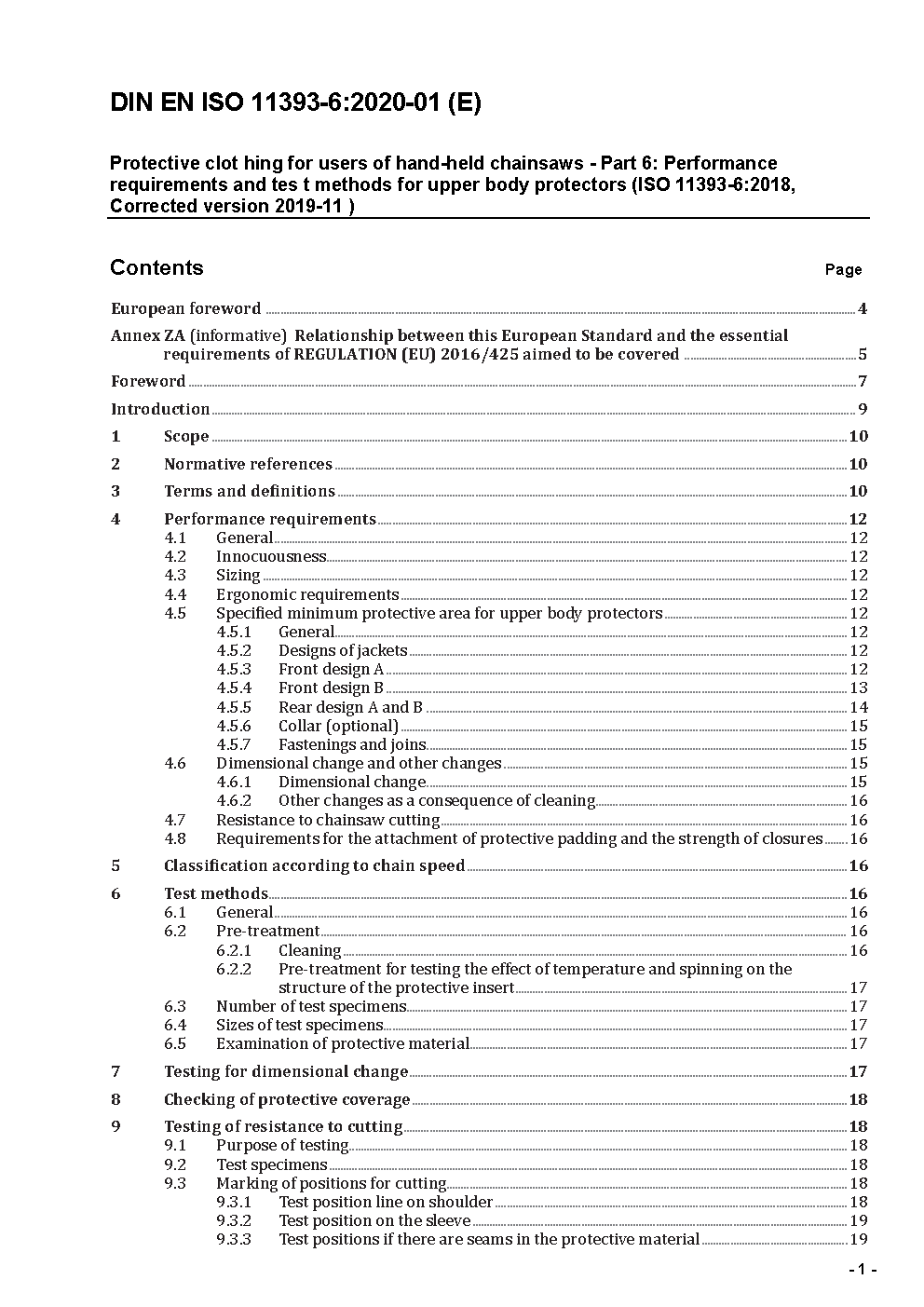 Protective clothing for users of hand-held chain-saws - Part 6: Test methods and performance requirements for upper body protectors (ISO/DIS 11393-6:2016); German and English version prEN ISO 11393-6:2016