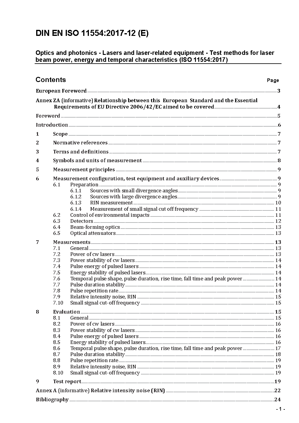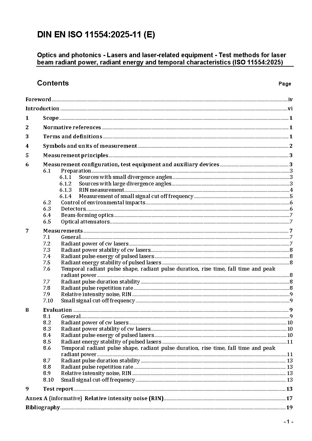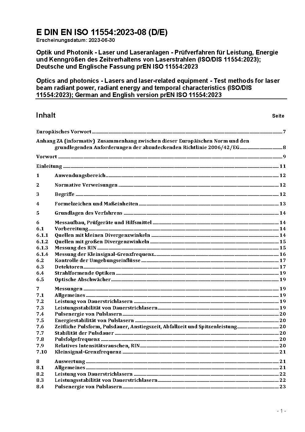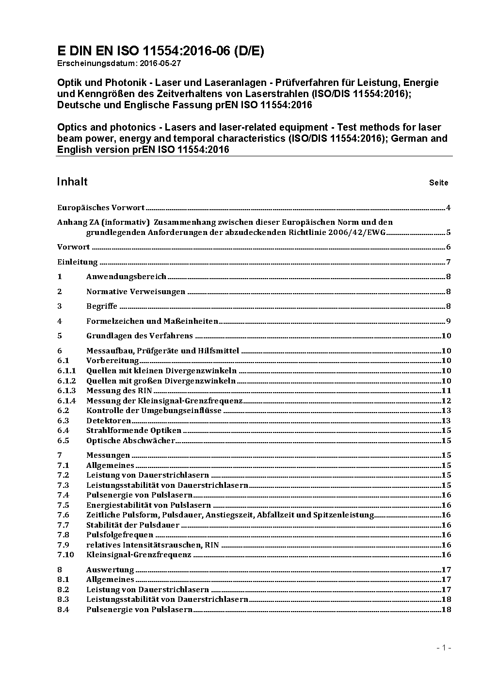 Optics and optical instruments - Lasers and laser related equipment - Test methods for laser beam parameters: Power, energy and temporal characteristics (ISO/DIS 11554:1995); German version prEN ISO 11554:1995