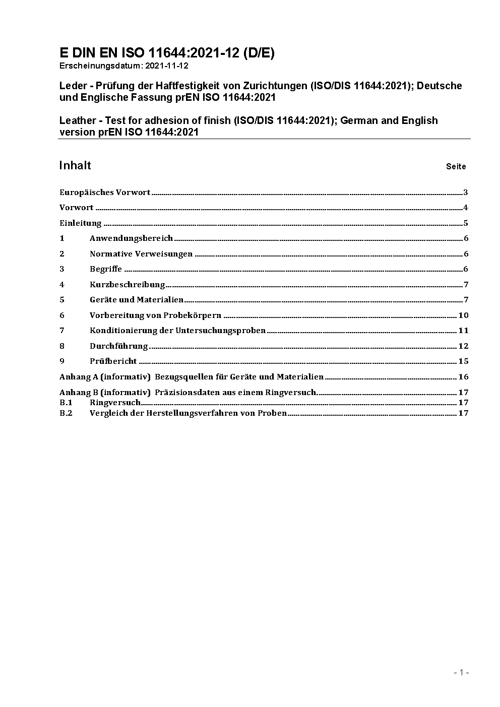 Leder - Prüfung der Haftfestigkeit von Zurichtungen (ISO 11644:2009); Deutsche Fassung EN ISO 11644:2009