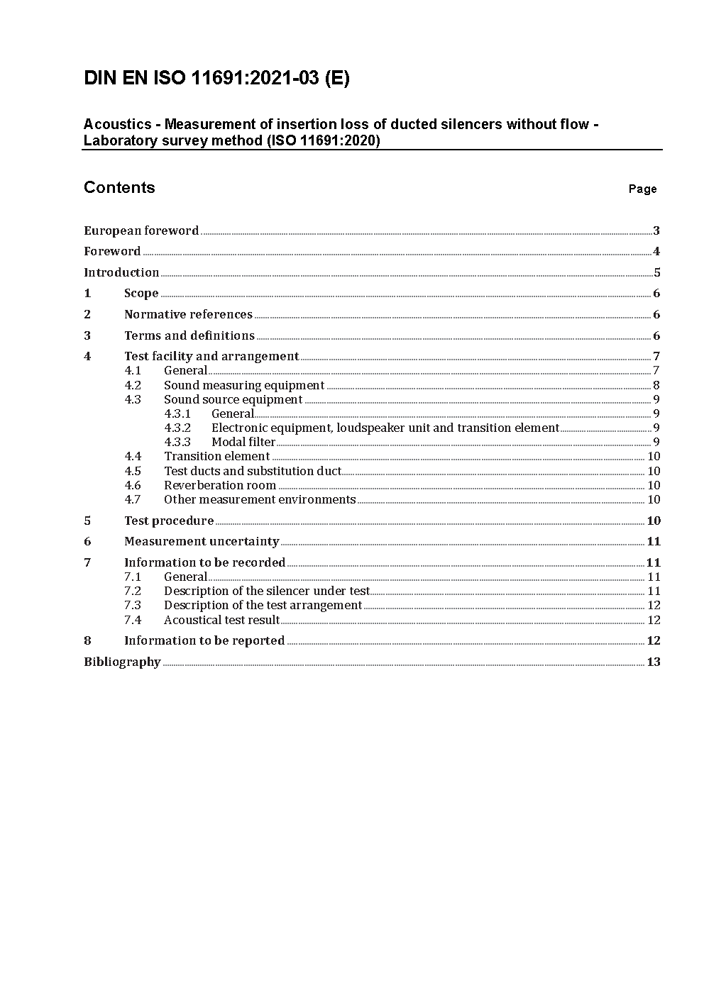 Acoustics - Measurement of insertion loss of ducted silencers without flow - Laboratory survey method (ISO/DIS 11691:2019); German and English version prEN ISO 11691:2019